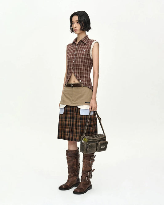 Skirt Double Layered Pleats Brown