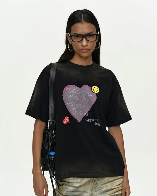 T-shirt Spray Washed Heart Message Black
