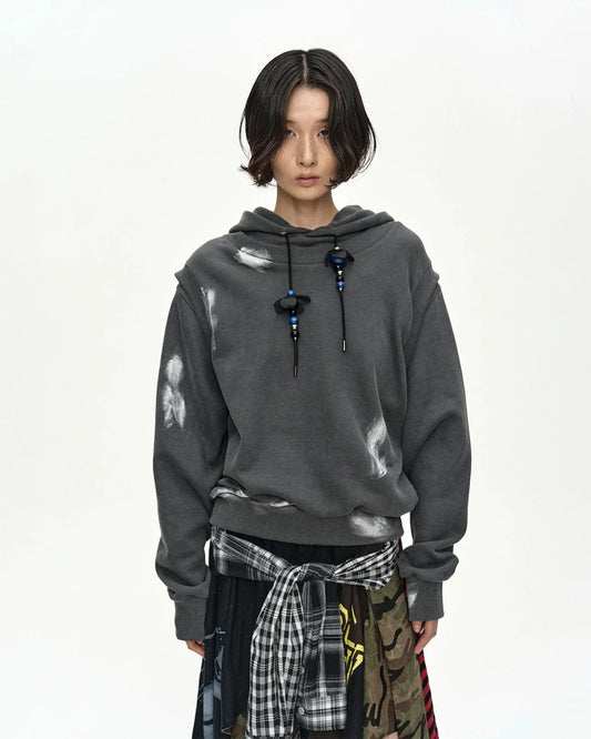 Hoodie Layered Metallic Painted Grey