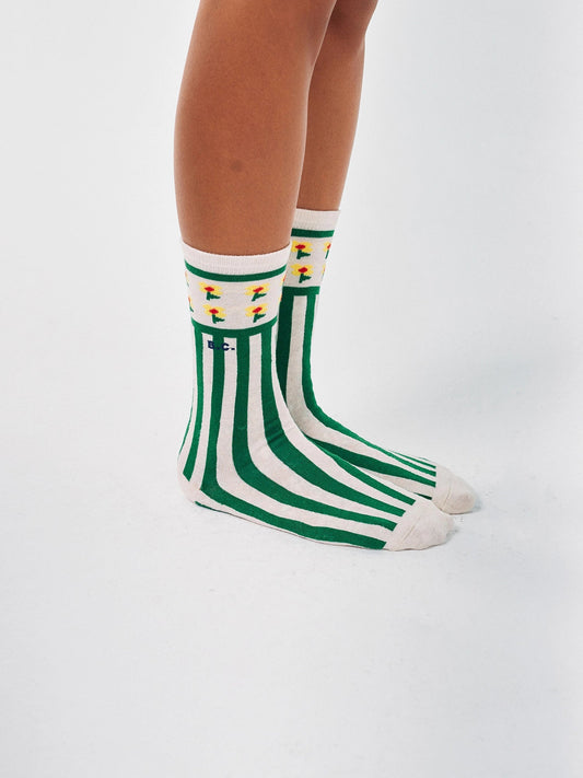 Cashmere Socks Three Stripes Beige&Lime&OffWhite