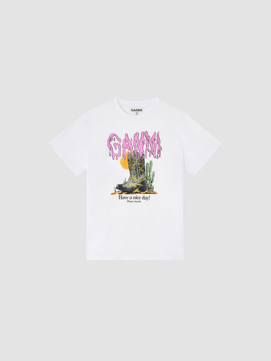 T-shirt Jersey Western Boot Print White