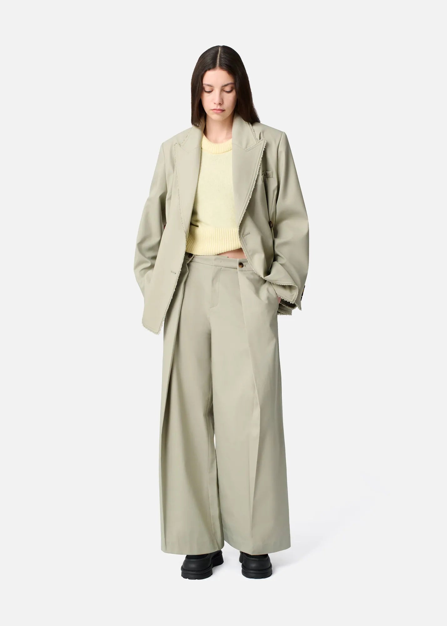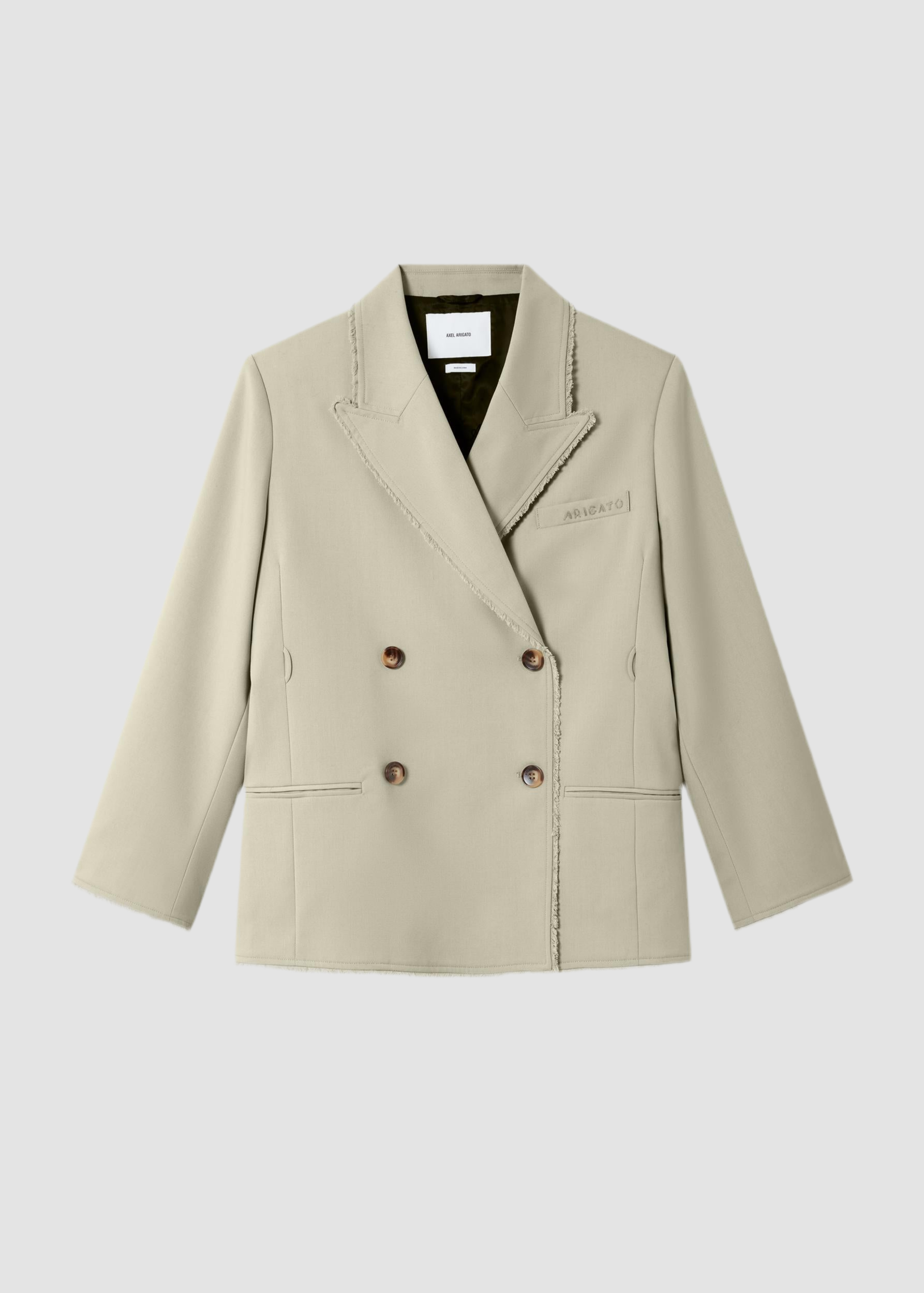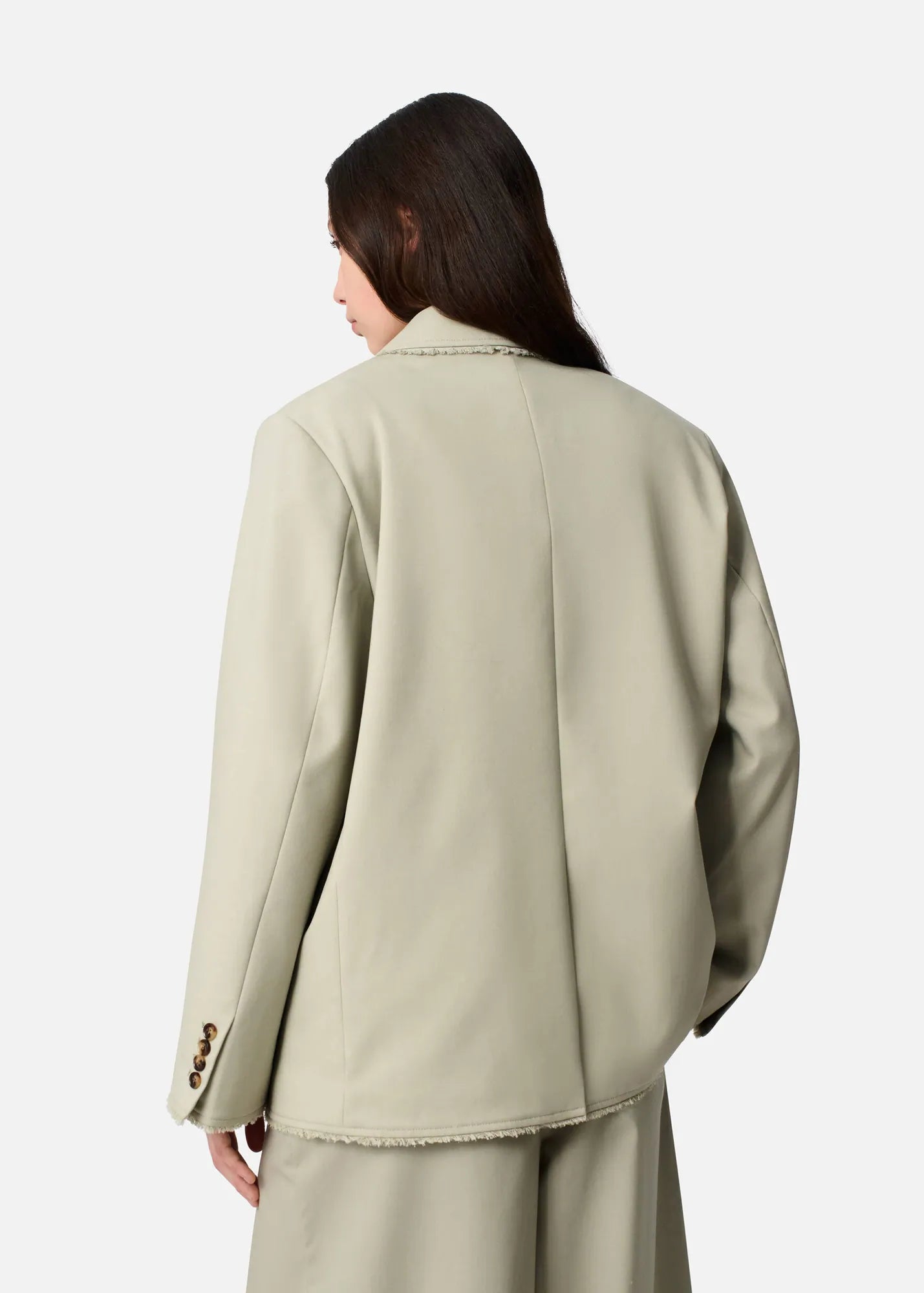 Sako Thea je ušité z vlněné směsi a má oversized střih s roztřepenými okraji. Sako doplňuje tónovaná výšivka.