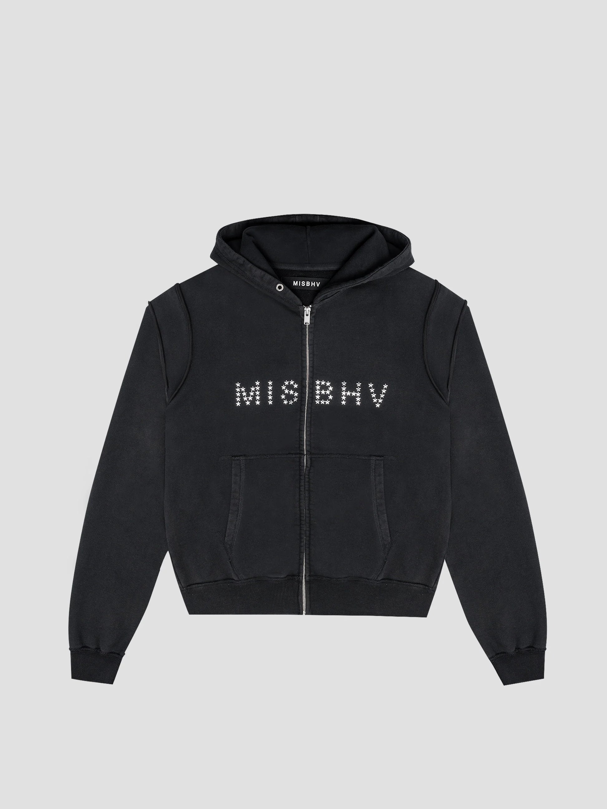 Mikina na zip z hutného french terry materiálu v černé barvě s efektem lehkého vyšisování.