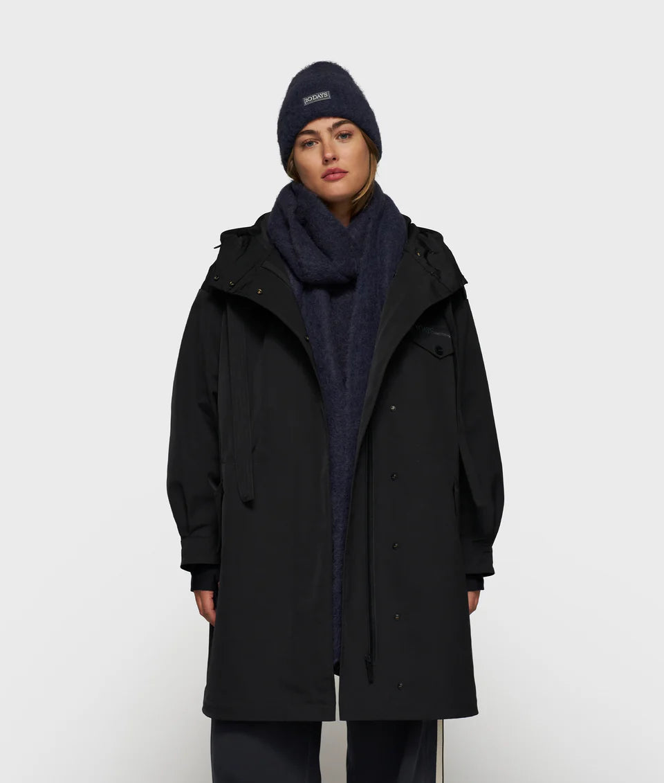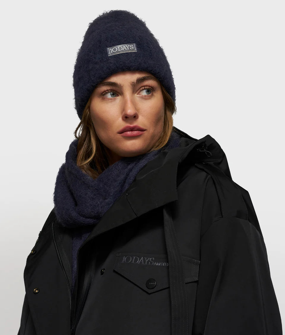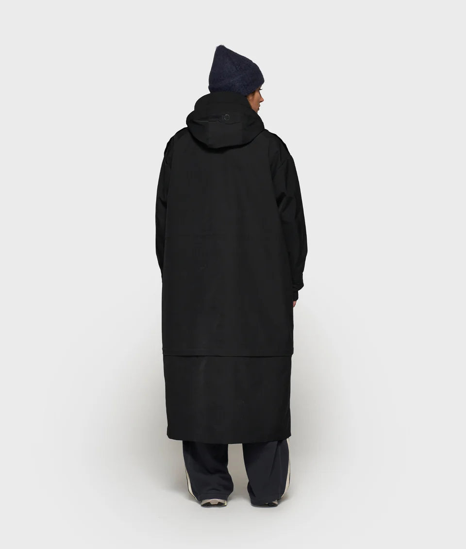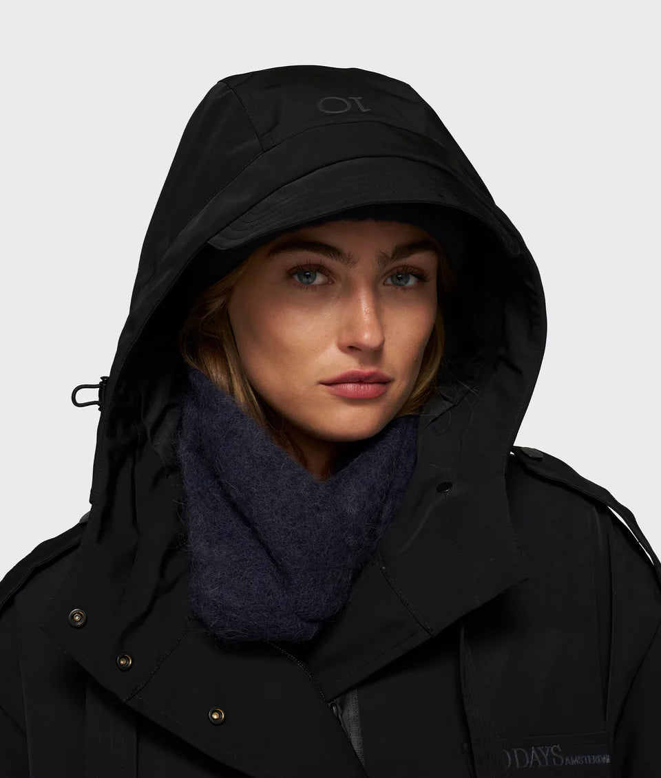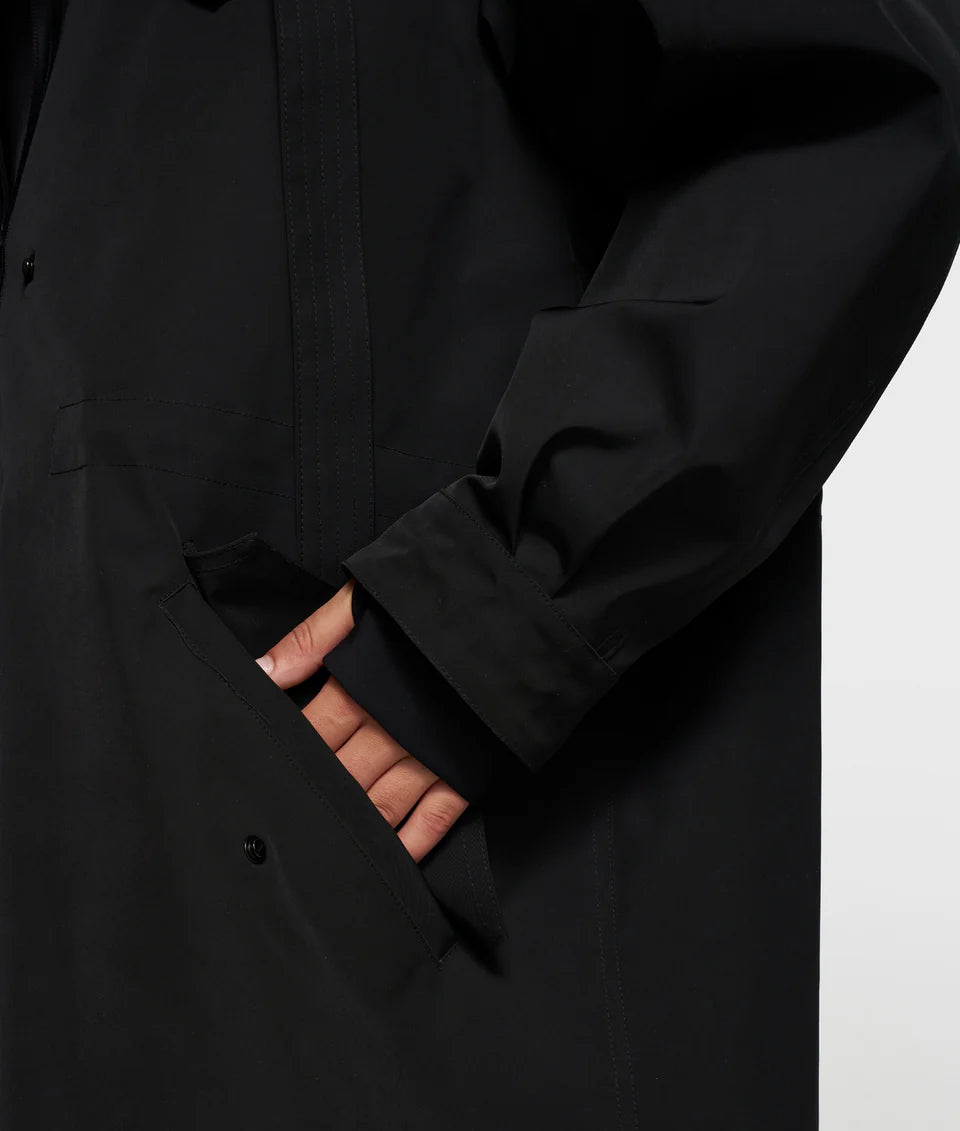 Klasická nepromokavá pláštěnka vyrobená z nepromokavé tkaniny s voděodolností 10 000 mm a 50% recyklovanou svrškem. Má odnímatelnou spodní polovinu, skrytý lem a nepromokavé zipy. Součástí jsou fleecové kapsy, potápěčské manžety s otvory pro palce, přední popruhy, vnitřní nastavitelný elastický pas a kapuce se stahovací šňůrkou. Dále má monogram „10“ na kapuci, potisk „10DAYS Amsterdam“ nad kapsou, dvě přední kapsy na knoflíky, vnitřní kapsu a charakteristické padákové popruhy 10DAYS pro nošení bez použití rukou.