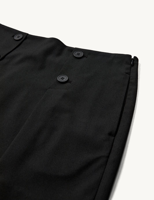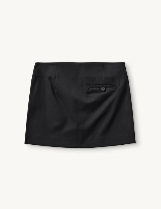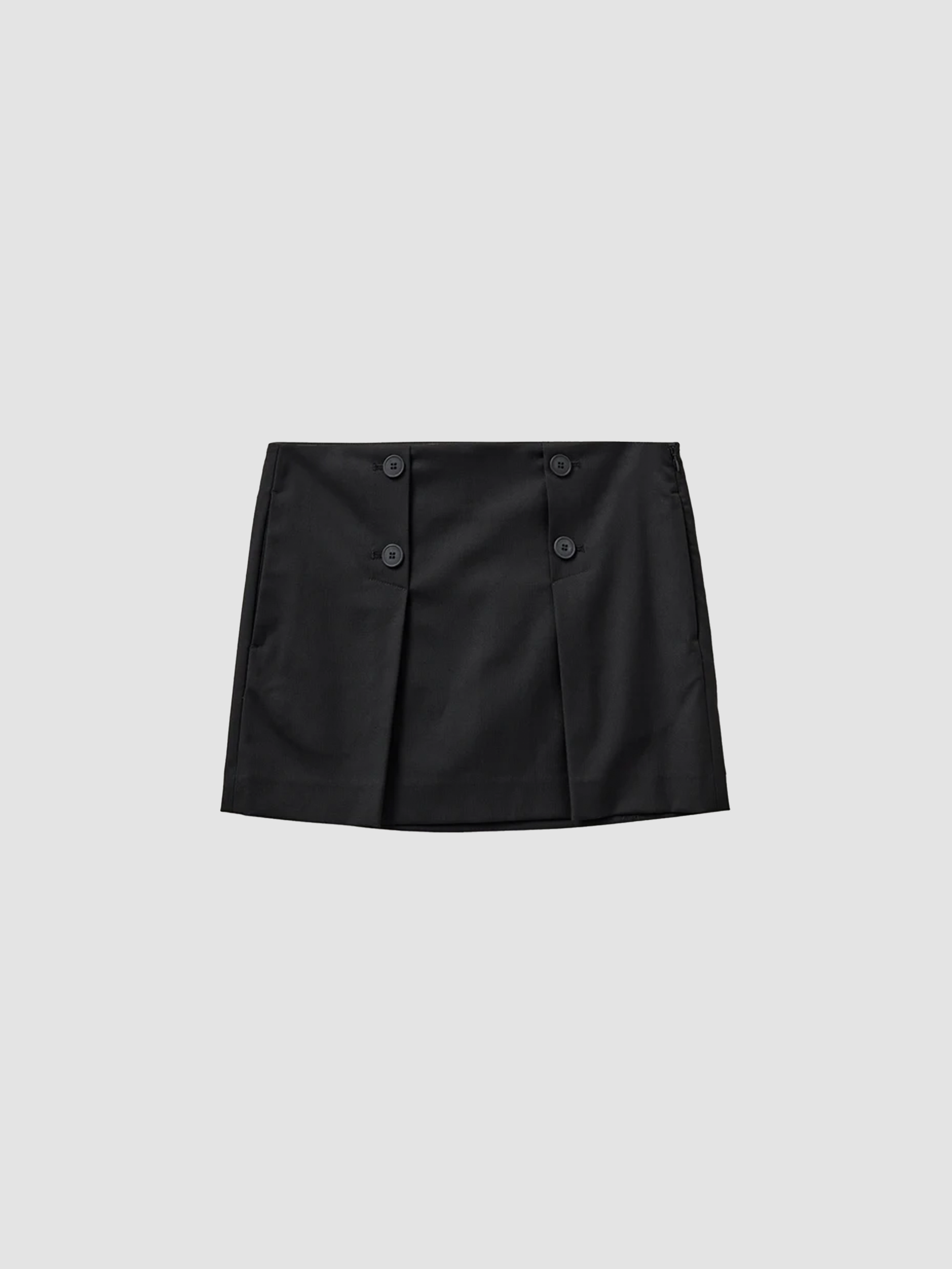 Elegantní a stylová mini sukně ozdobená sklady a dekorativními knoflíky na přední straně. Má mini délku a praktické boční kapsy.