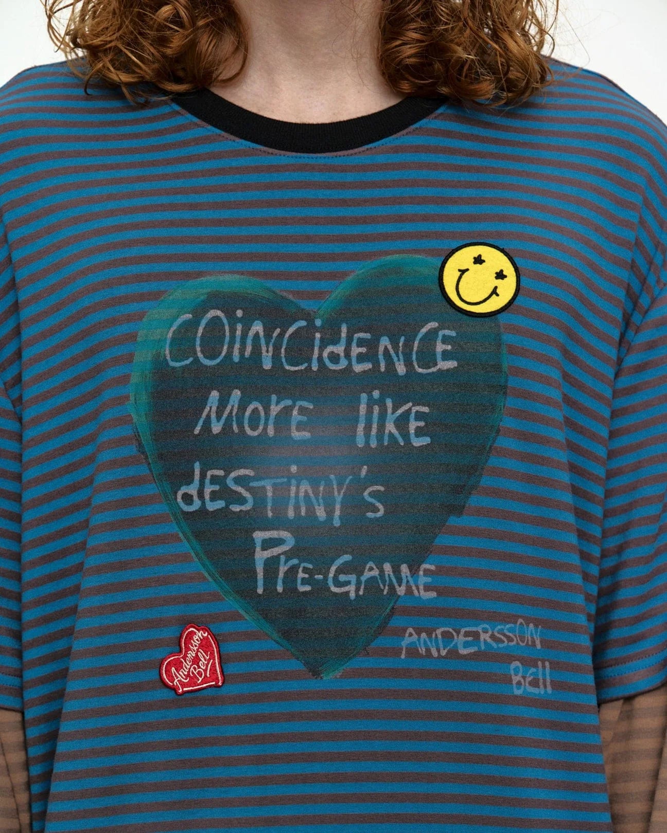 T-shirt Heart Message Stripe Layered Blue