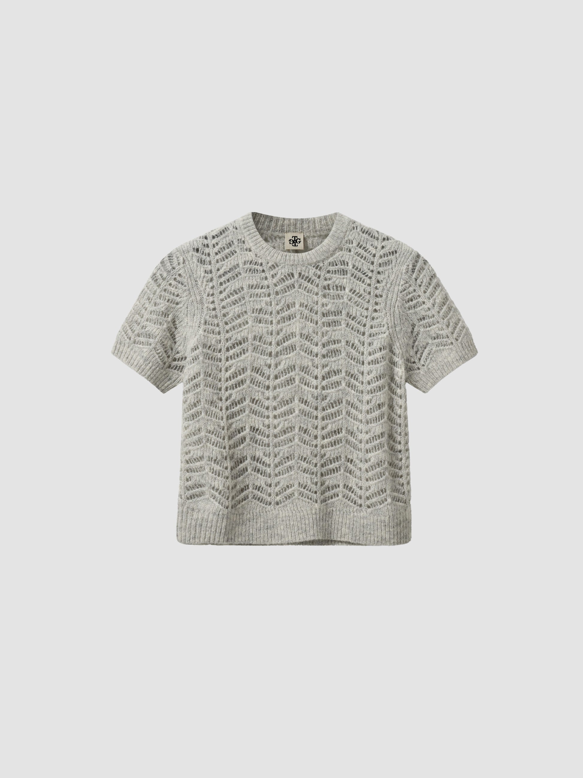 Tričko Verbier Pointelle Mini je pletené tričko vyrobené z luxusní směsi alpaky, vlny a polyamidu. Díky jemnému pointelle vzoru působí elegantně a zároveň nabízí pohodlný a stylový střih.