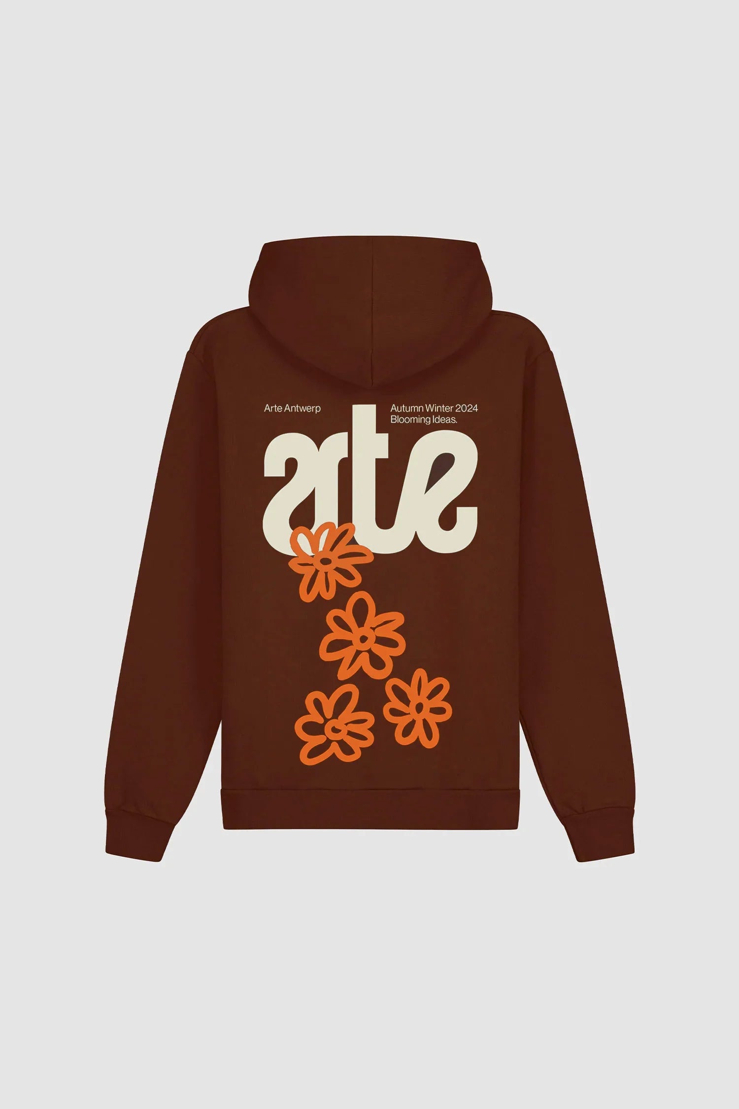 Mikina s kapucí Blooming Ideas má grafický potisk na zadní straně, který nasměruje ducha této kolekce. Mikina je vyrobena z prémiové bavlny, má nastavitelnou kapuci se stahovací šňůrkou a velkou klokaní kapsu. Dodává se v hnědé barvě a je zakončen bílým vyšitým logem Arte na levé straně hrudi.
