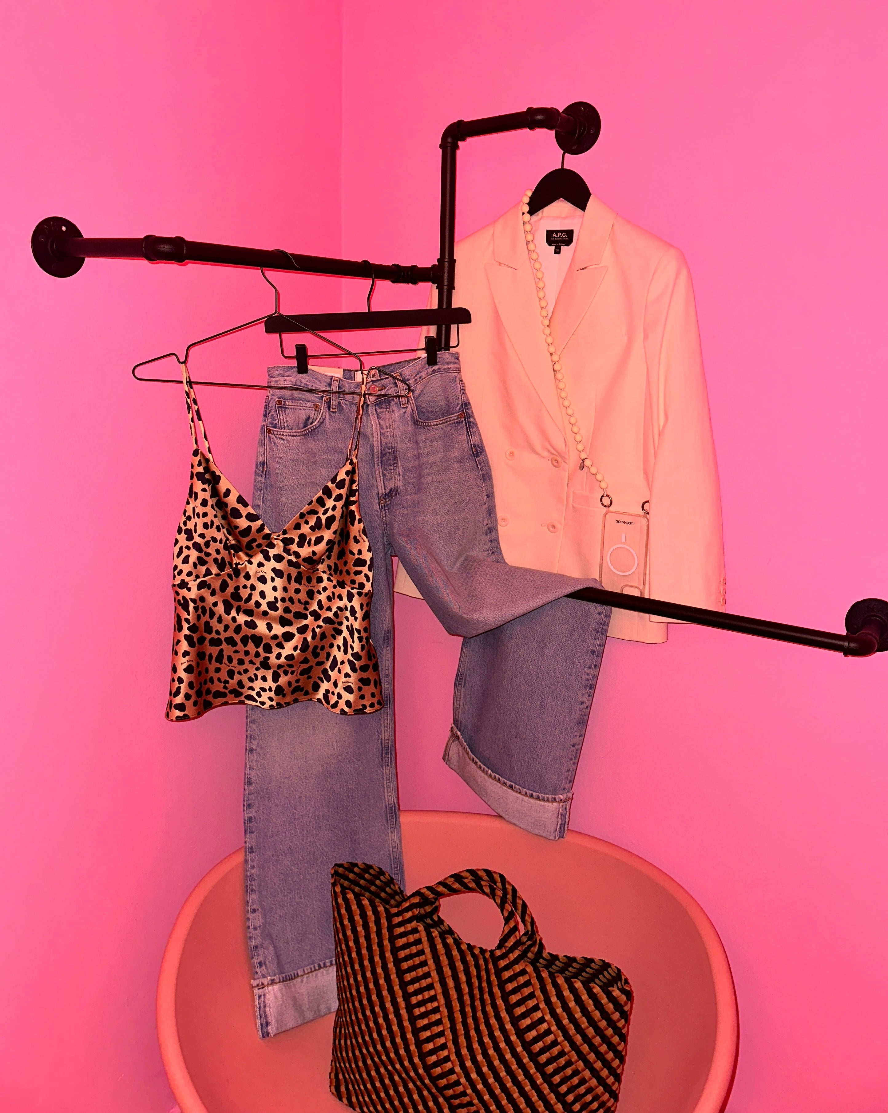 Our store is located at Kozí 3 in the heart of Prague’s Old Town, just around the corner from Pařížská Street. Spanning over 200 m², the space was designed to be as inspiring and unique as the fashion we offer. With bold blue walls, soft pink fitting rooms, and custom-made furniture – from tiled counters to pipe-frame tables and arched changing cabins – the interior reflects our love for creativity, color, and detail.