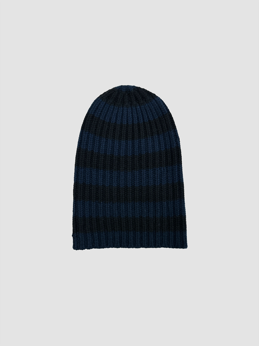 Cashmere Beanie Tricolor Blue & Off White & Grey
