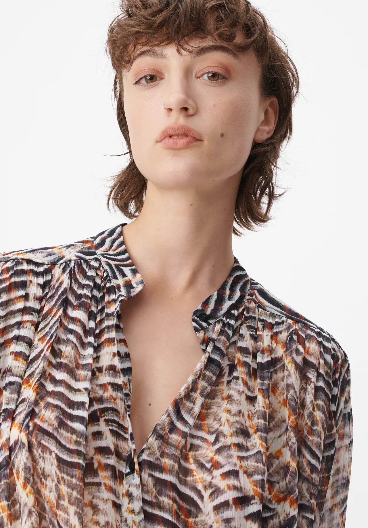 It's simply chic. Featuring a flowy silhouette and wide sleeves, Baylin is made from viscose georgette. A bold zebra shibori print is infused with pops of orange to create a striking design.