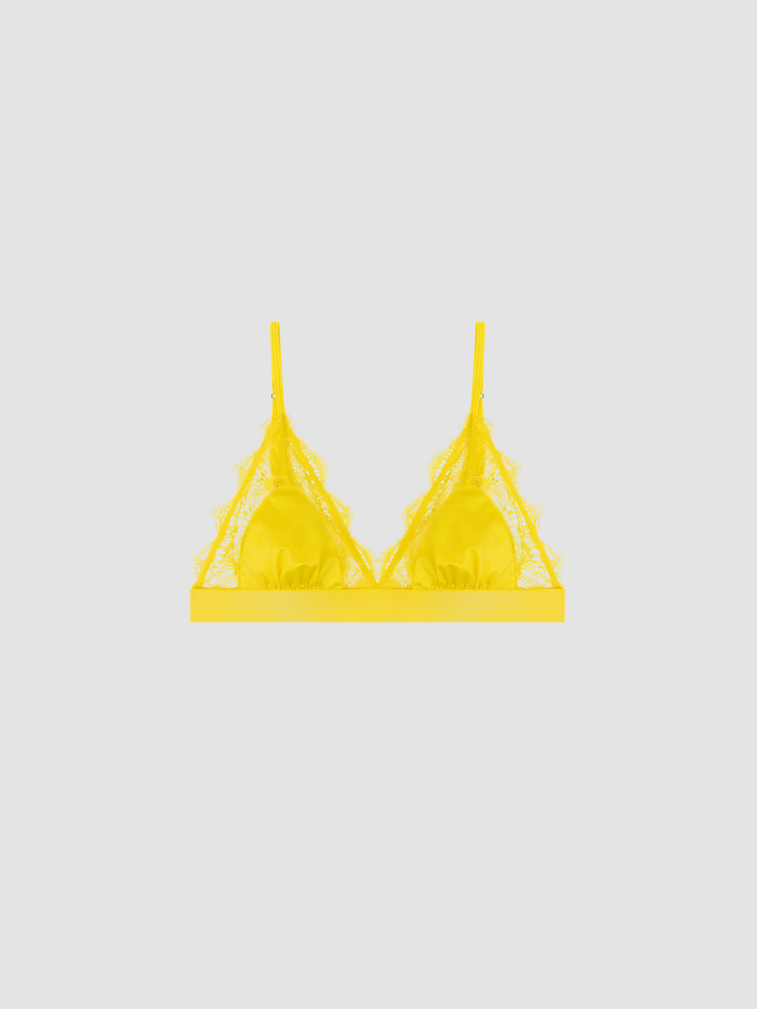 - The bralette is crafted from a soft, shiny fabric that feels smooth against your skin