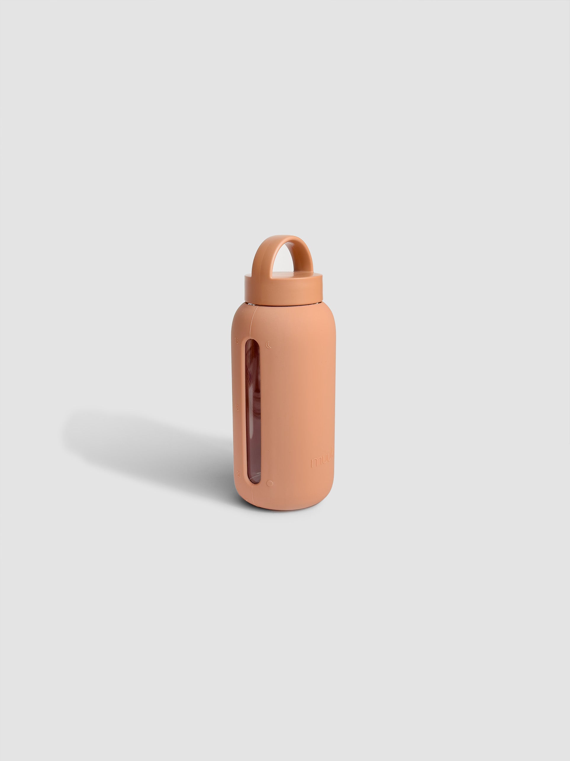 Our bottles are made from borosilicate glass, which is the purest way to drink water. The glass is very durable and thermally resistant. You can safely use the bottle also for tea and herbal infusions.