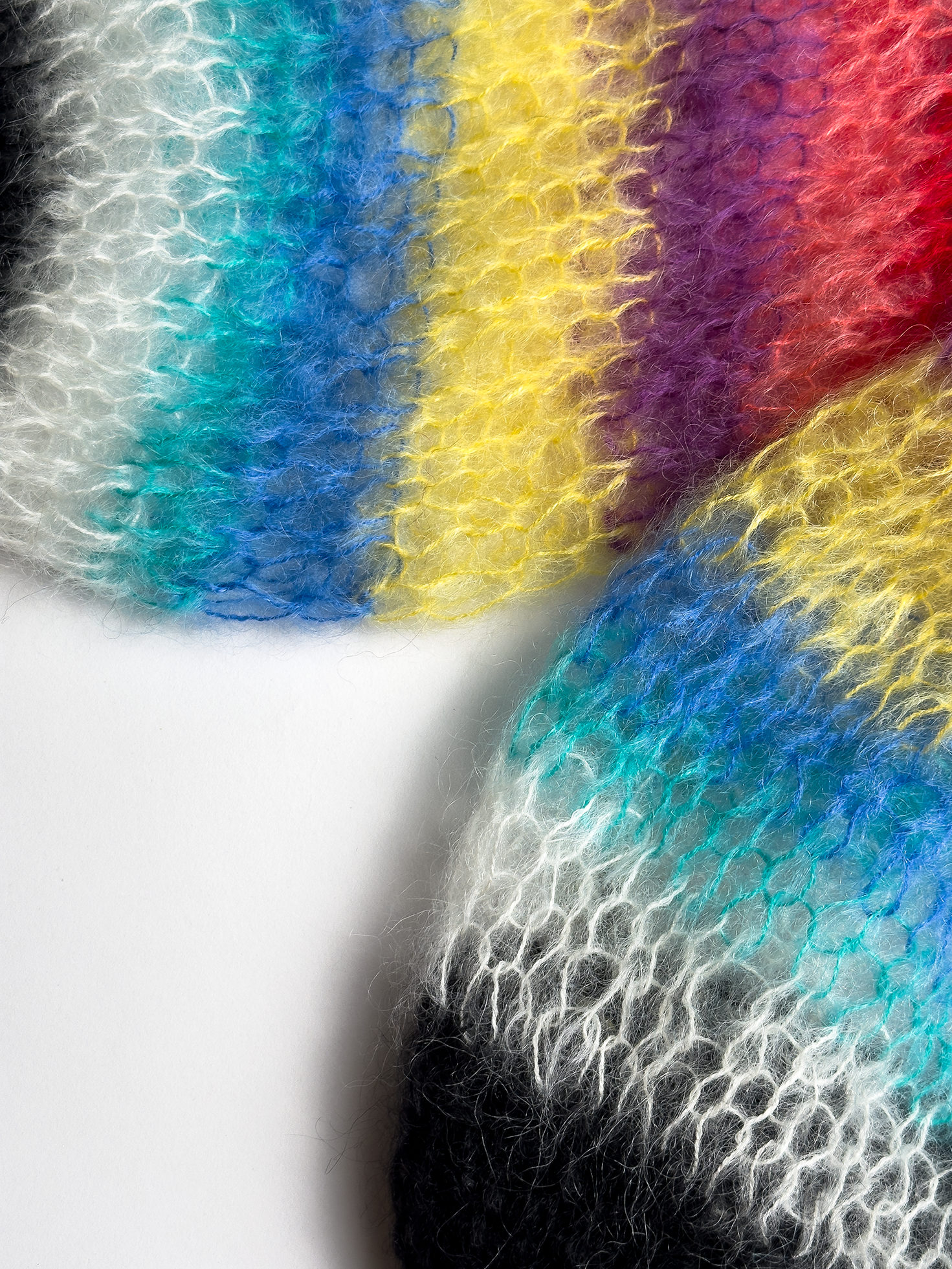 This piece is made from 75% Mohair, 20% Wool, 5% Polyamide.