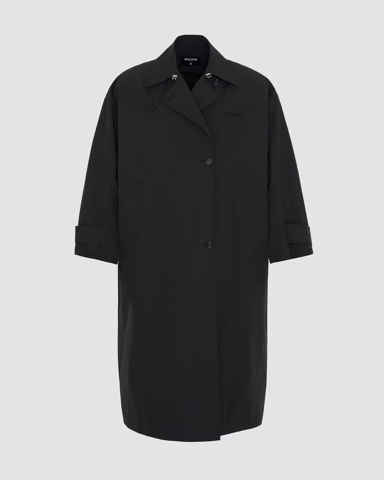 A unisex oversized coat with a relaxed and comfortable fit, perfect for everyday wear. Inside, it features a removable quilted vest for extra warmth and versatility. The front is adorned with logo embroidery, while a rubber patch on the back of the collar adds a modern touch. The collar also includes a removable storm flap and hook-and-eye closure for added protection against the elements.