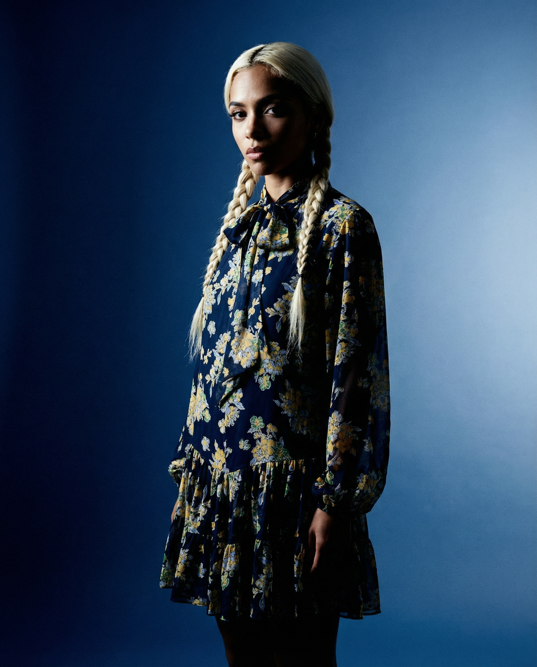 Dress Anaya Bouquet Devore Navy