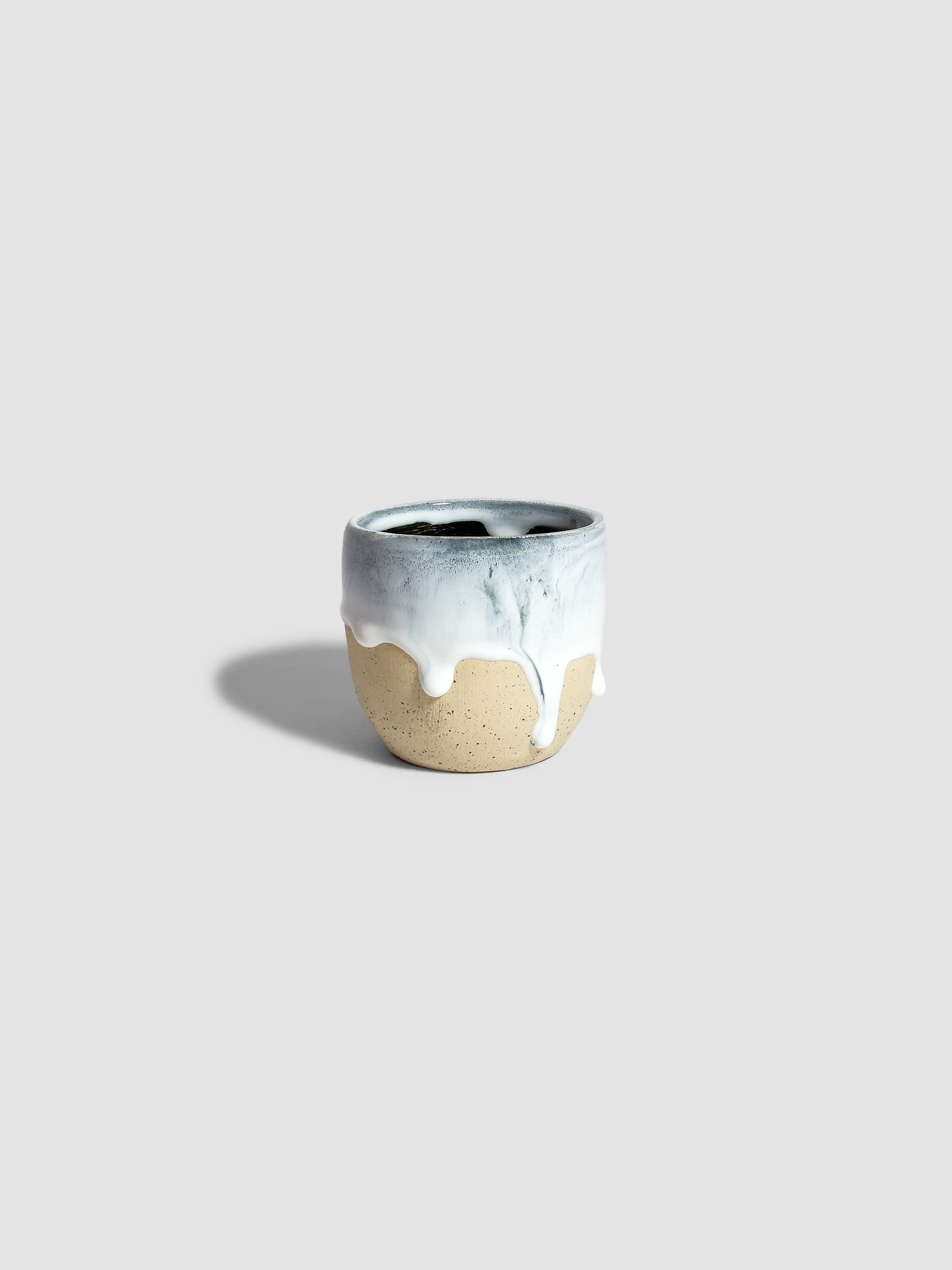 Original “dripping paint” espresso cup. Made from food safe materials for everyday use, made using high firing, earthenware, covered with transparent glaze.