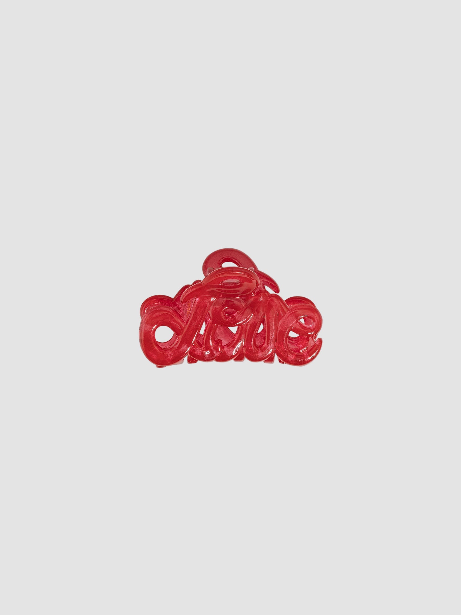 Cute red hair clip in shape of word “love”.