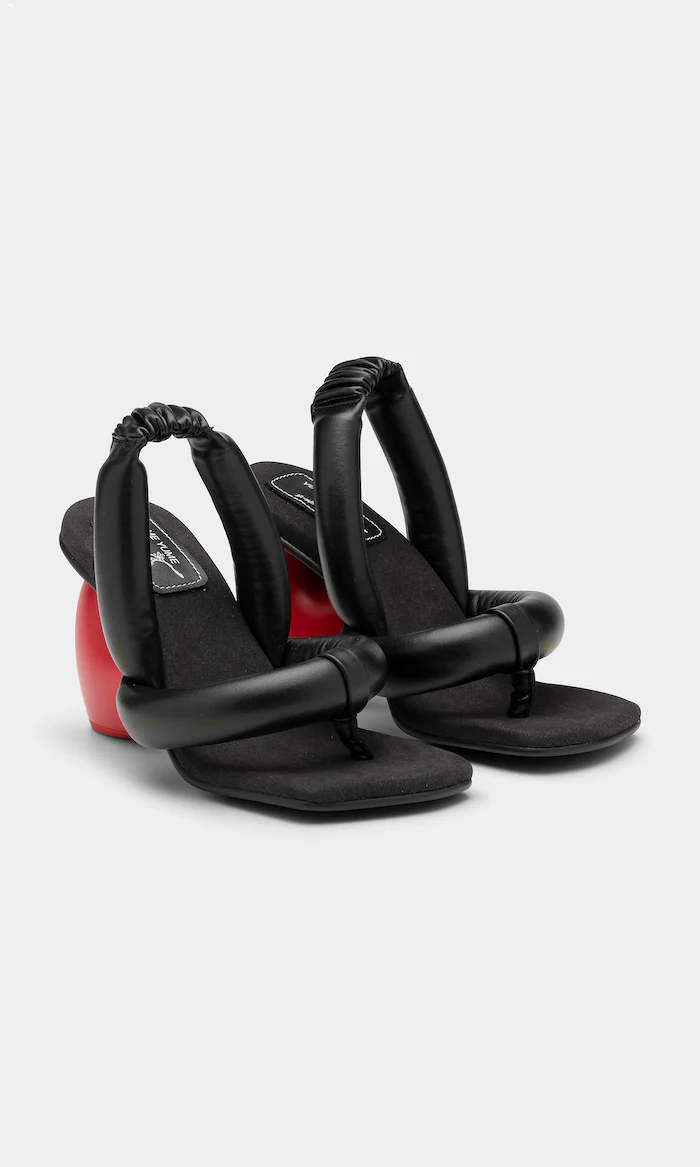 Love heels are made from soft vegan leather that is partly plant based. The percentage of bamboo in the fabric makes the fabric durable and anti stretch. The puffy shape of the straps and the square nose are inspired by our classic Suki silhouette. The 3D heart heel makes this style an iconic piece.