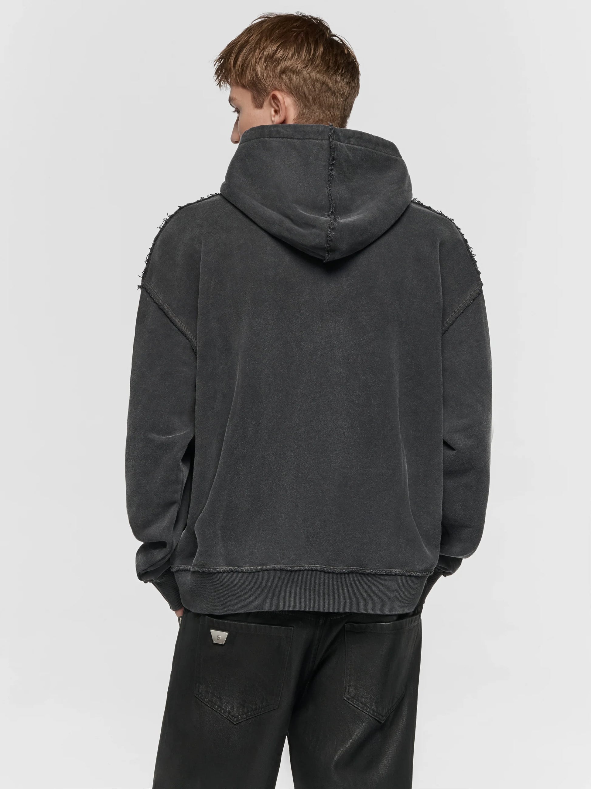 Heavyweight french terry hoodie in grey. Fading throughout.