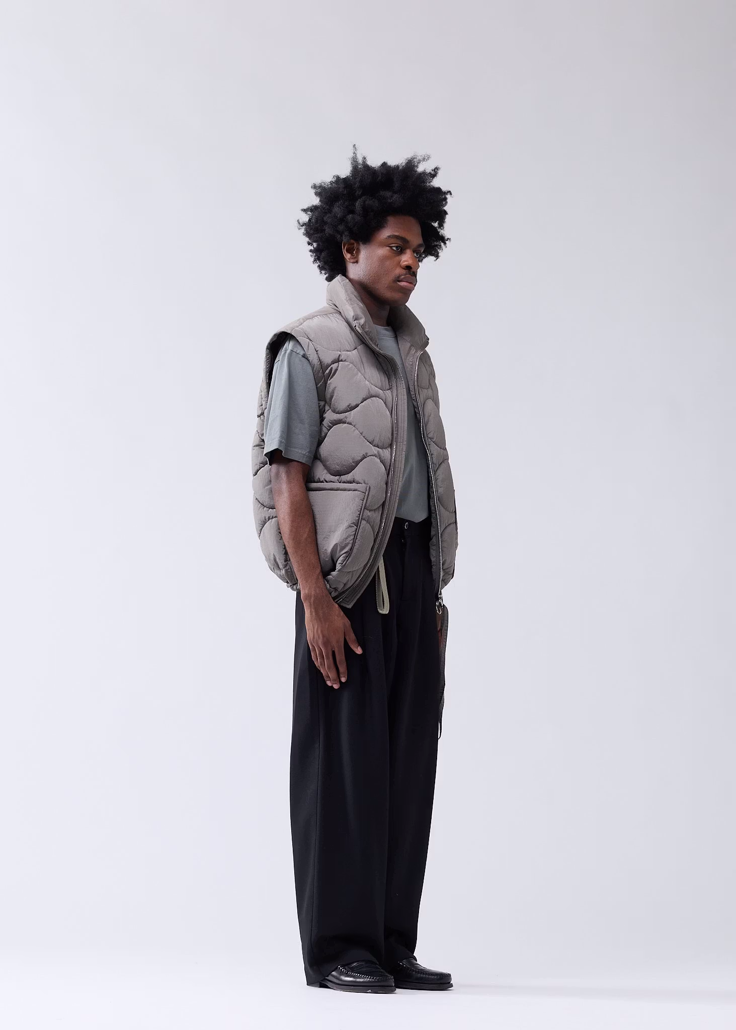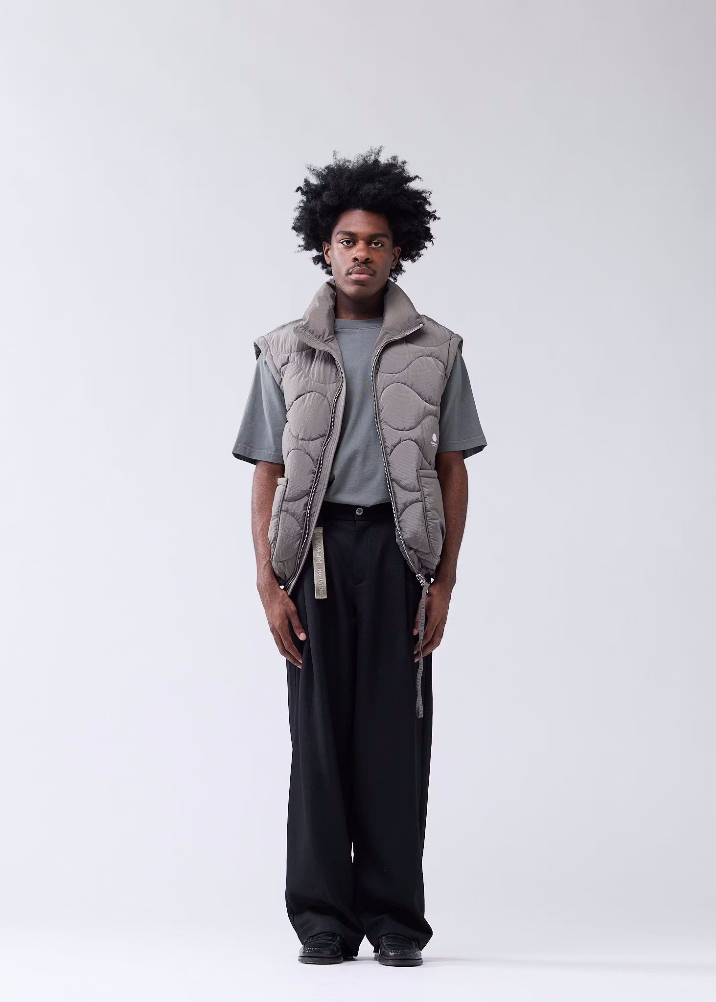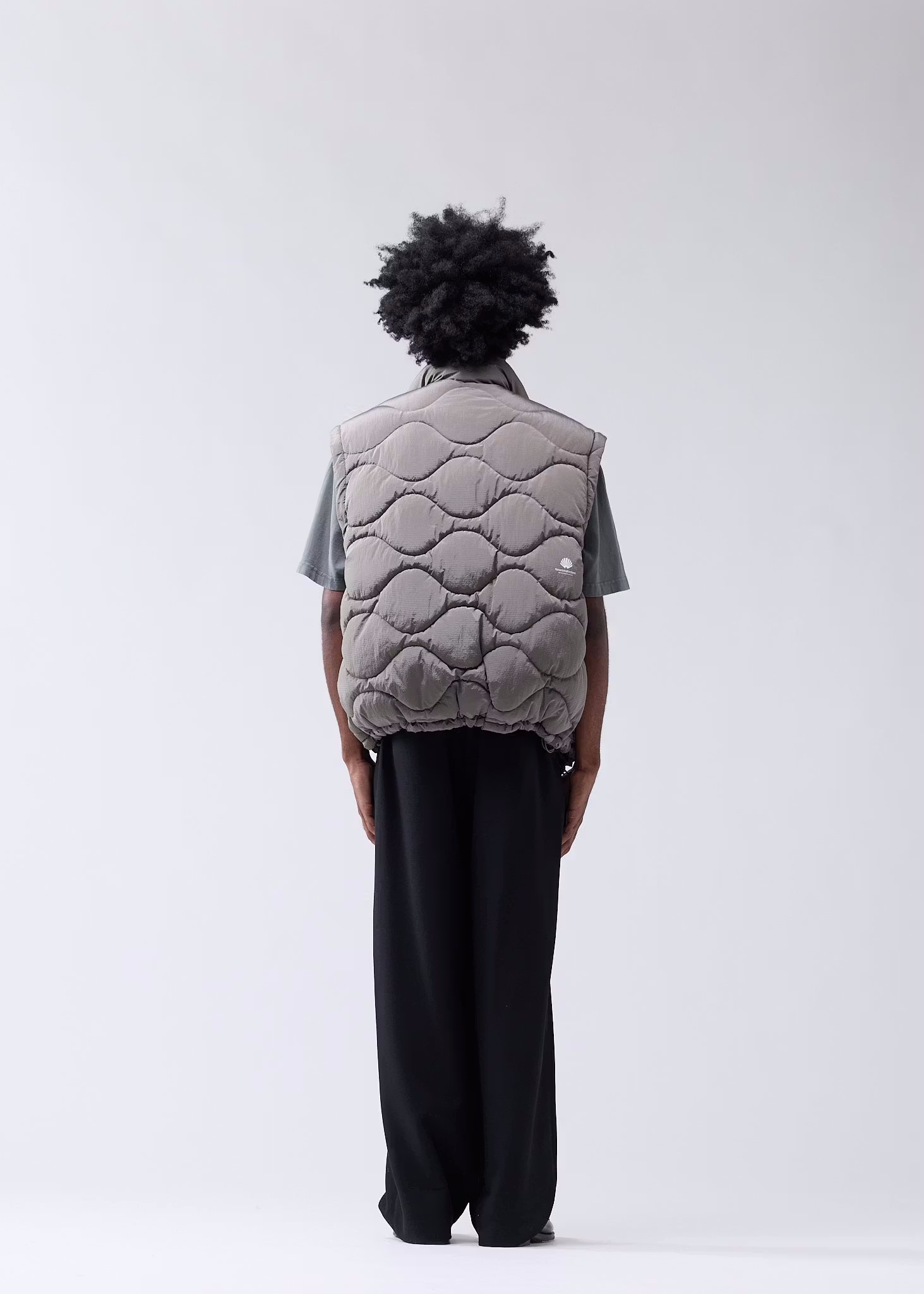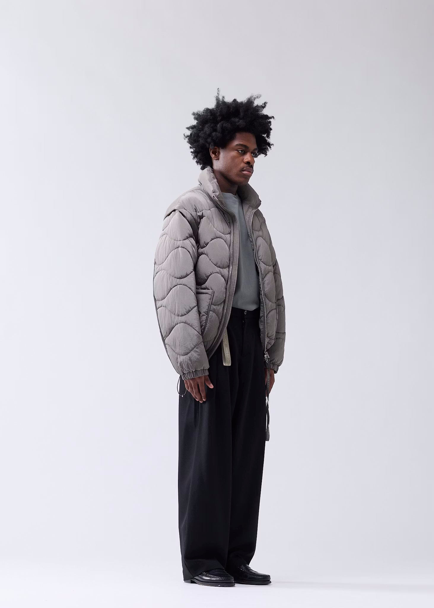 This jacket is made out of a shiny ripstop nylon. It is styled with a metal double zipper front patch pockets and a classic onion quilt. Front and back of the jacket are branded with a white screenprint logo. The bottom hem contains an elastic drawcord with branded cordstoppers. The jacket has got a regular unisex fit with padded silhouette.