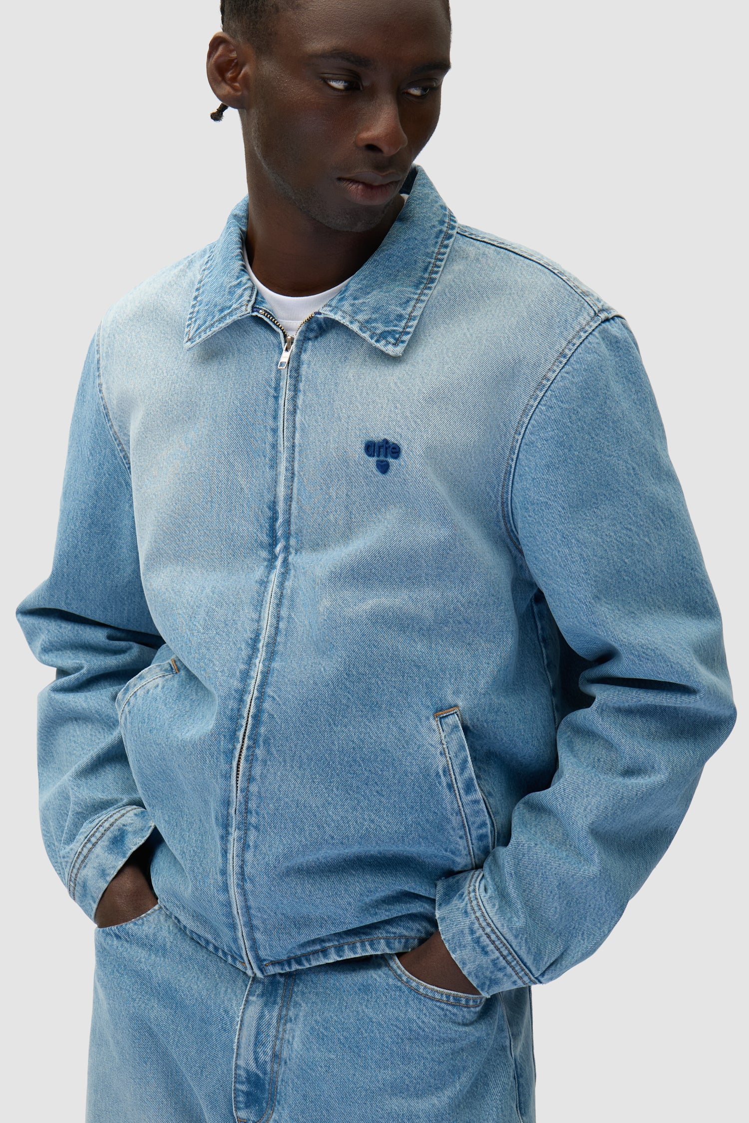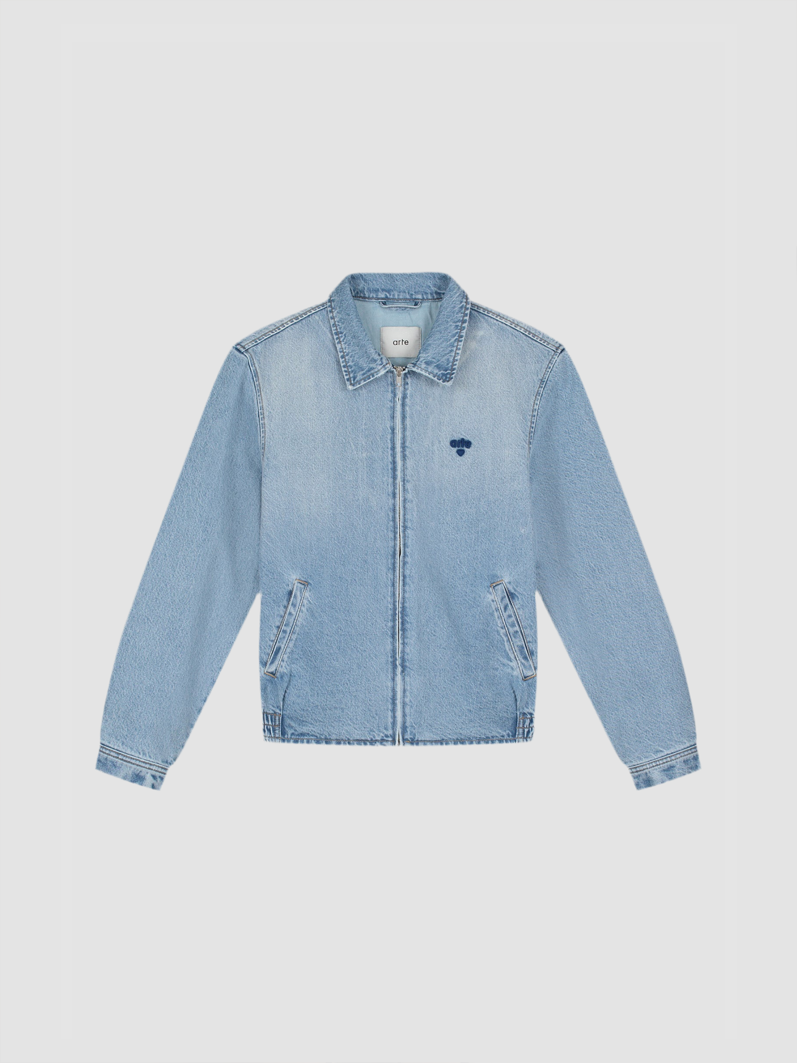Made from premium cotton, the denim jacket has a full-length zipper and two streamlined side pockets. The bleached jacket features a seasonal Arte logo embroidered in blue on the left of the chest.