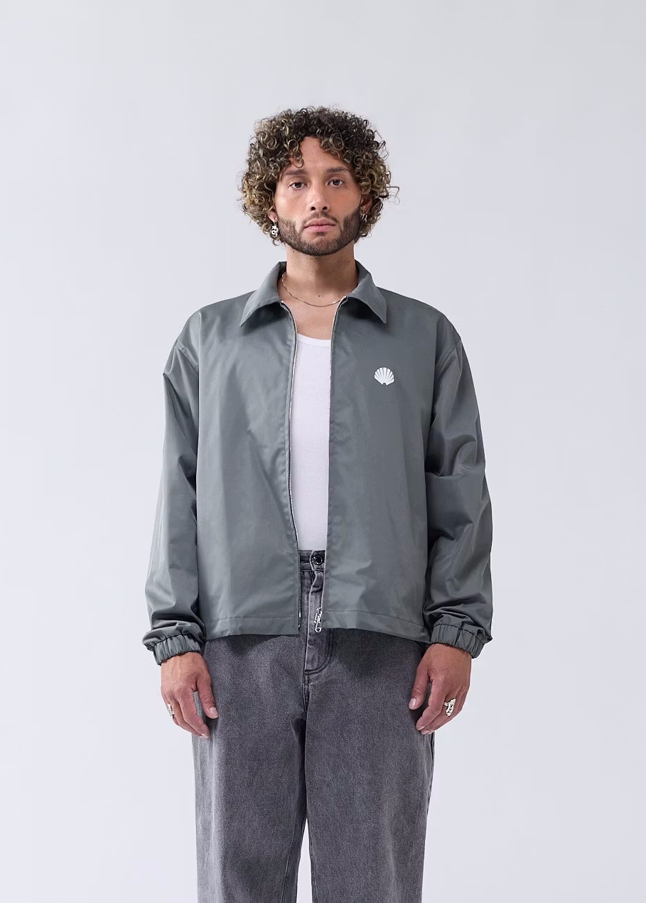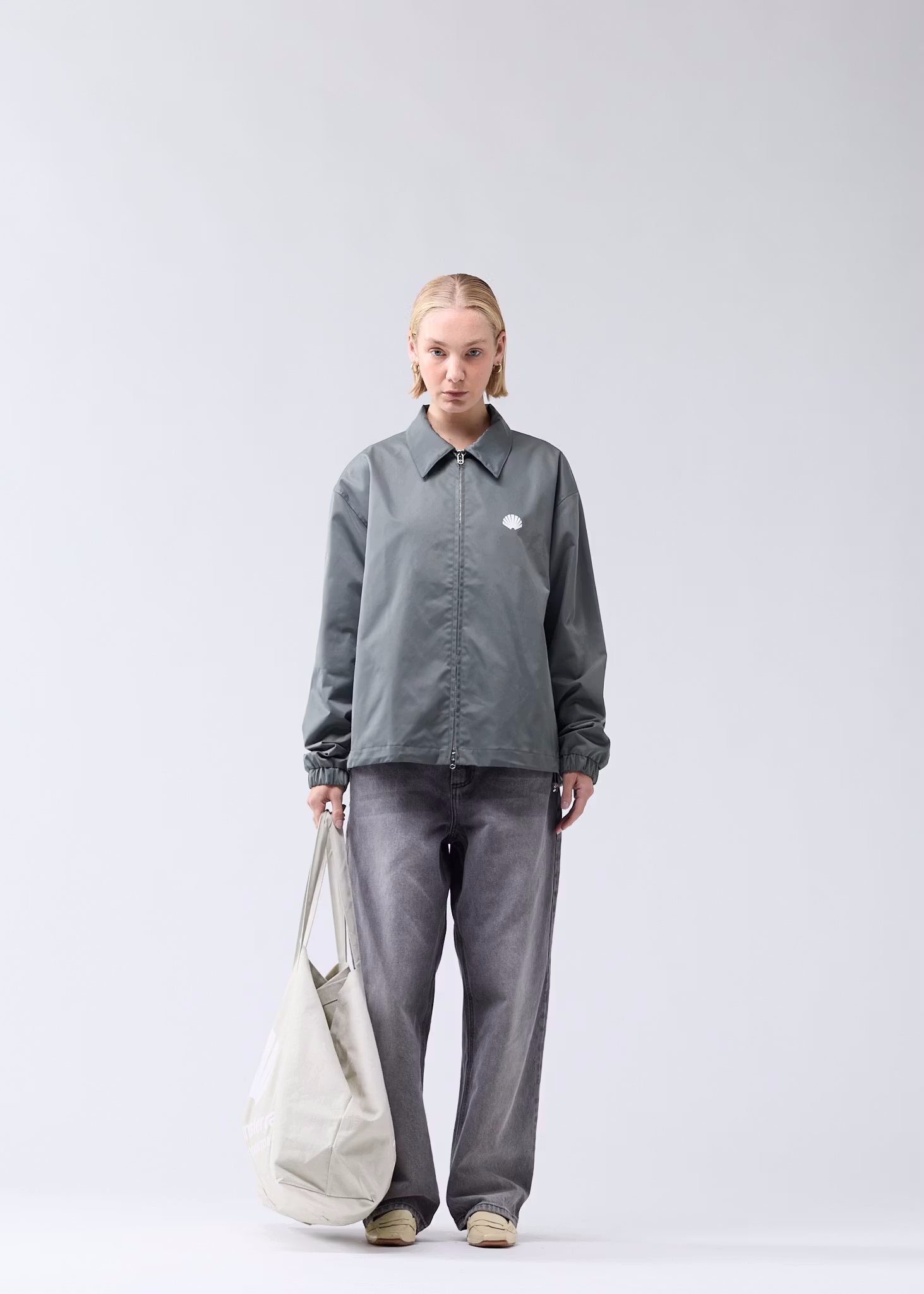 This jacket is made out of a heavy nylon fabric with branded lining and screen print on chest and back. The jacket is styled with branded metal double zip, side seam zip pockets, elastic cuffs and an adjustable cords on the bottom hem. The jacket has a regular unisex fit with the classic coach jacket silhouette.