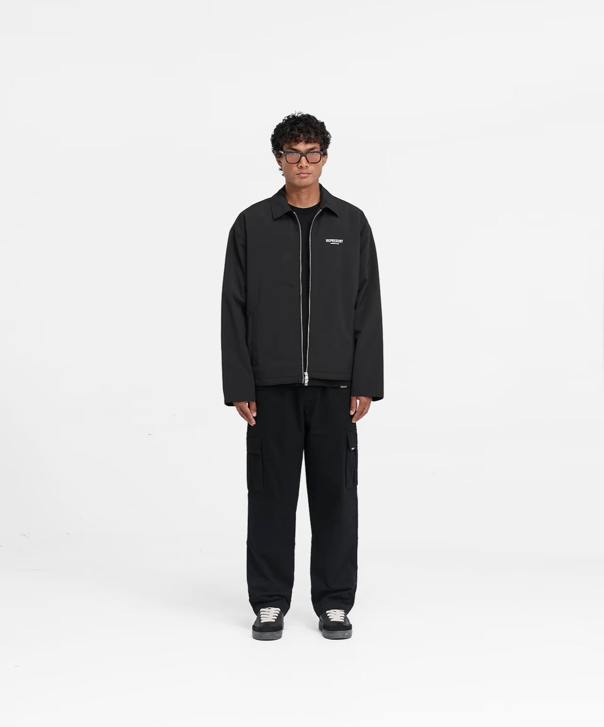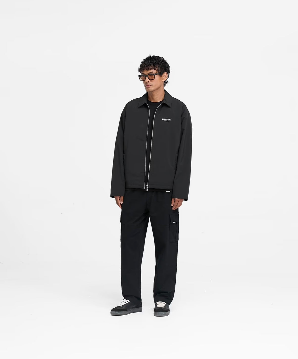 Introducing the Owners’ Club Coach Jacket in Black, a regular fit jacket crafted with lightweight sheet wadding and a YKK double ended front zip closure. The jacket showcases ruching to the cuffs, with welt pockets, and darts to the rear for shaping. It is finished with a high density Owners’ Club screen print to the front.