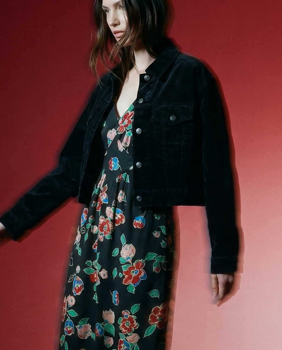 The Radley Jacket is a modern staple with subtle vintage nods, featuring a relaxed silhouette in a washed-out black with warm undertones. Crafted from a recycled and organic cotton blend for softness and structure. Wear it layered over tonal separates or a crisp white tee.