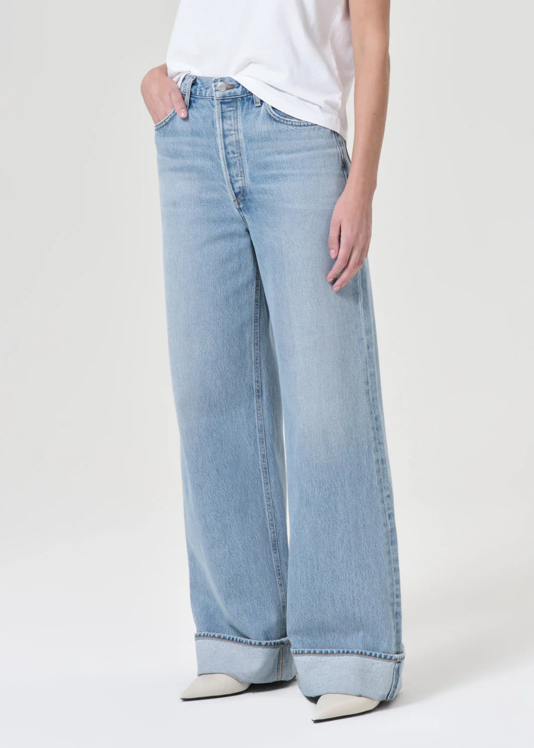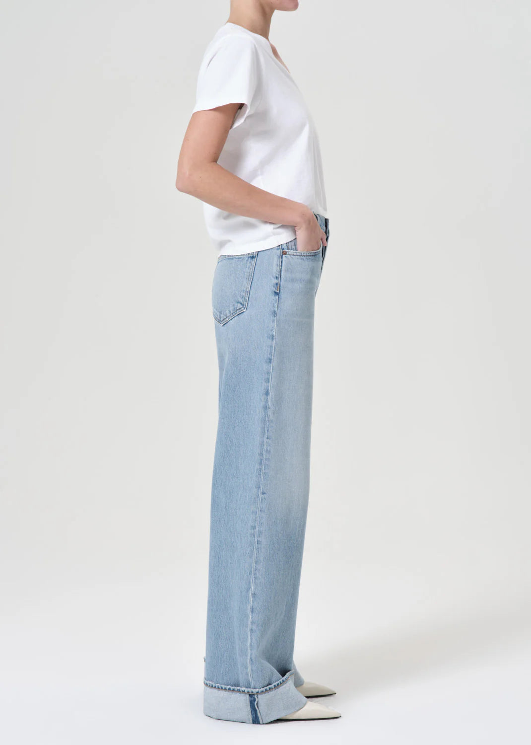 The cuff trend continues with our Dame Jean. Featuring a waist-accentuating high-rise, a relaxed, wide leg, and an untacked cuff. Create an ultra-flattering look by styling the statement fit back to a sleek tee.