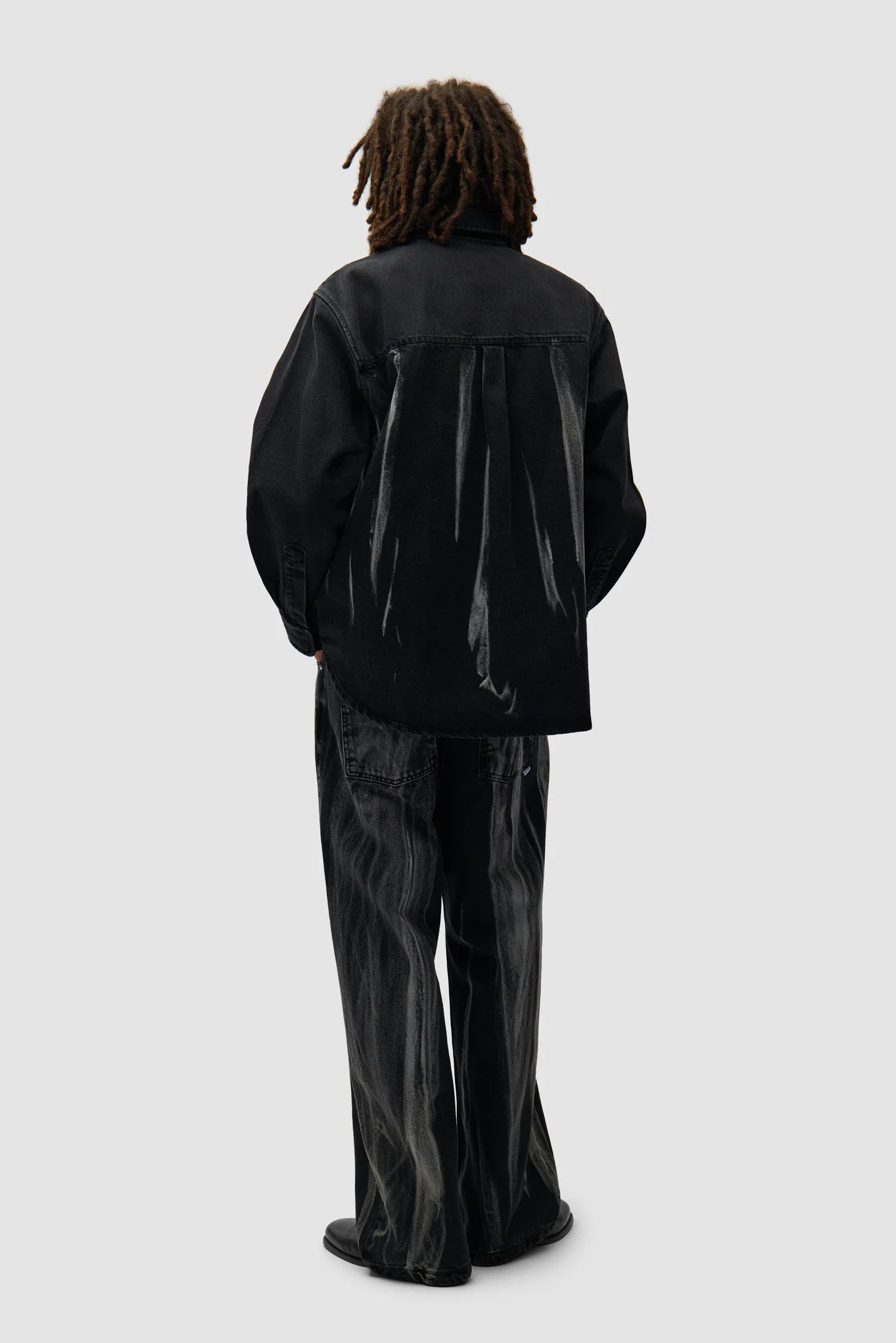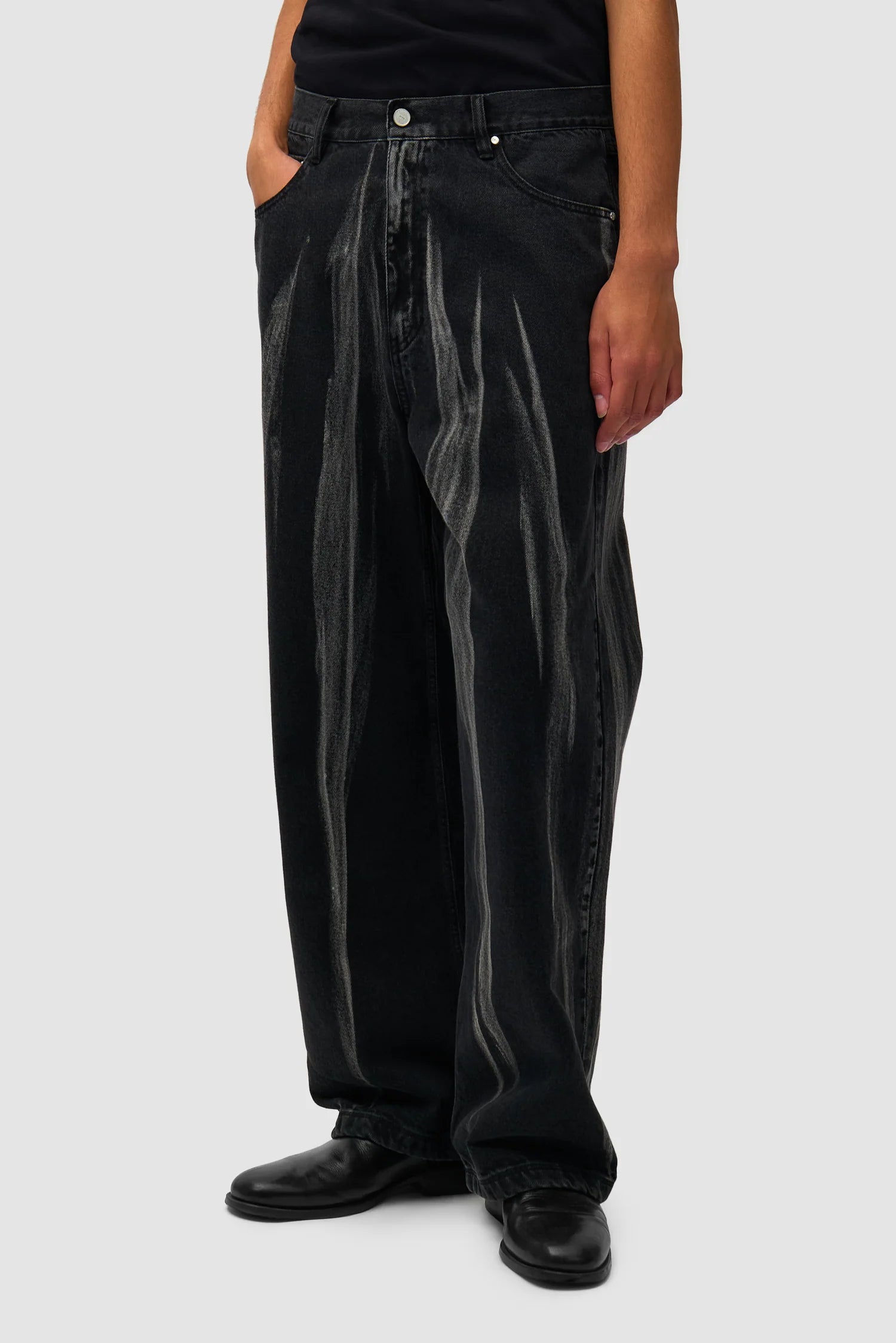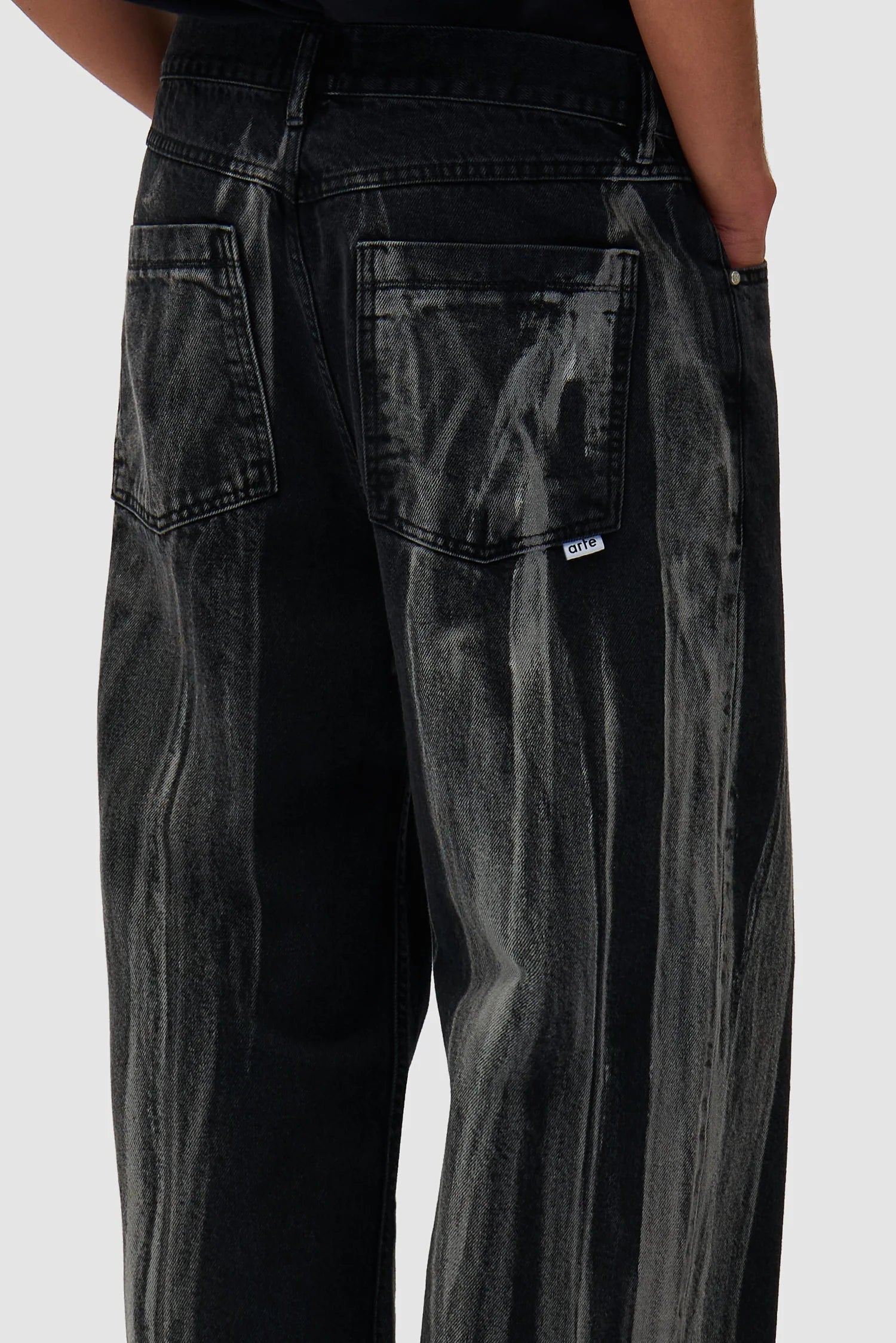 Made from premium cotton, the black denim is detailed with white paint strokes all over. The pants come in a classic 5-pocket style and have a relaxed slightly tapered fit.