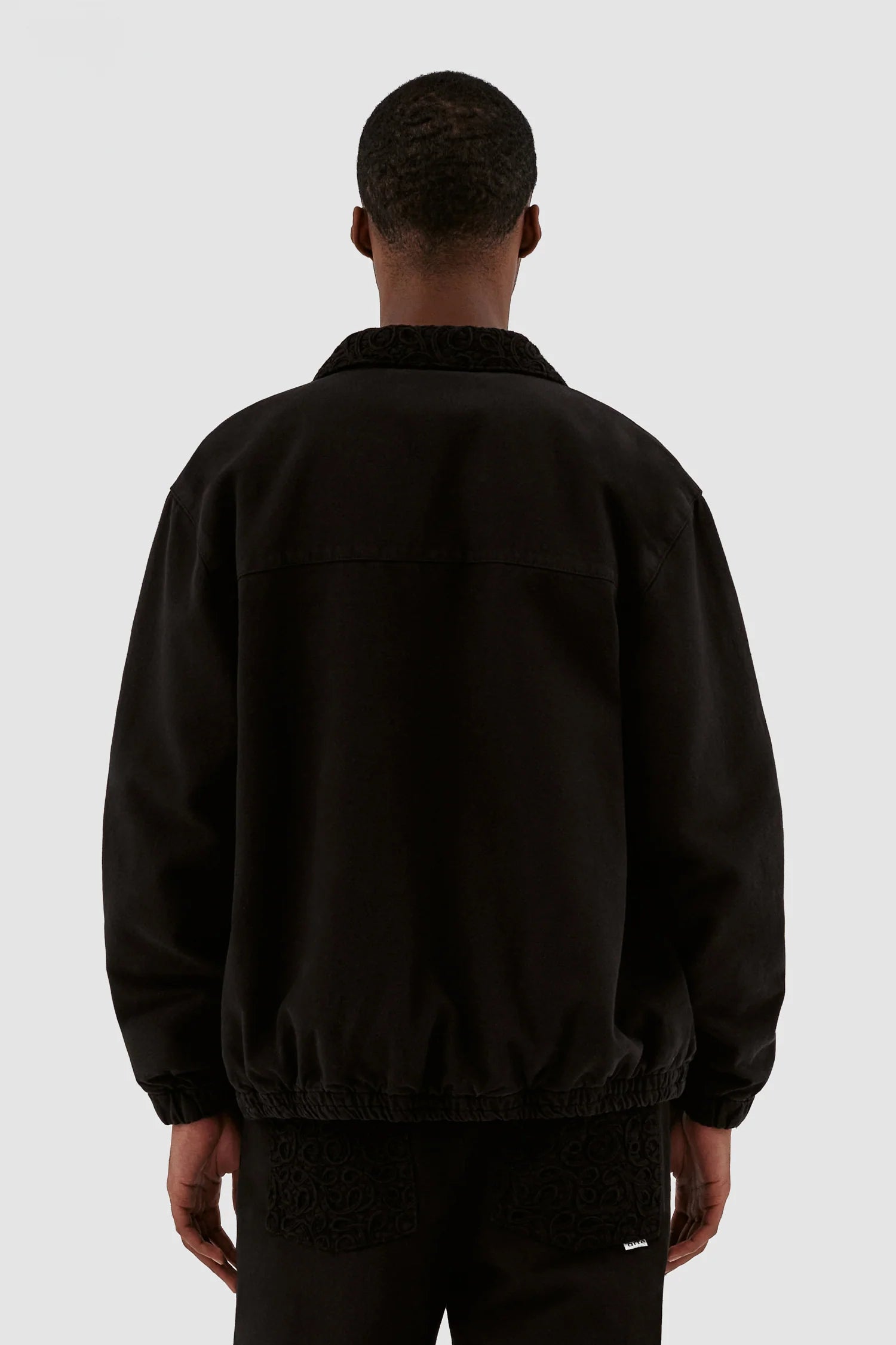 The Joshua Detail Collar in black is a versatile everyday staple with a twist. Made from premium cotton canvas, the jacket features a floral detailed collar contrasting its minimal design. This everyday jacket is finished with two front pockets and a full length zipper.