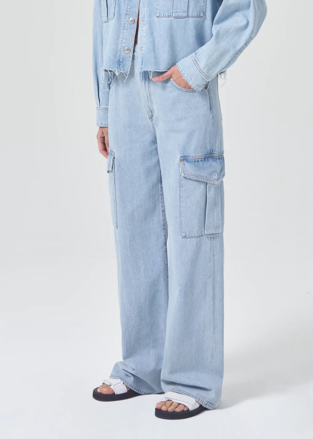 Featuring a waist-accentuating high rise, a relaxed flare leg, and large cargo pockets. It is crafted in our signature Organic Cotton so you can look good while feeling good.