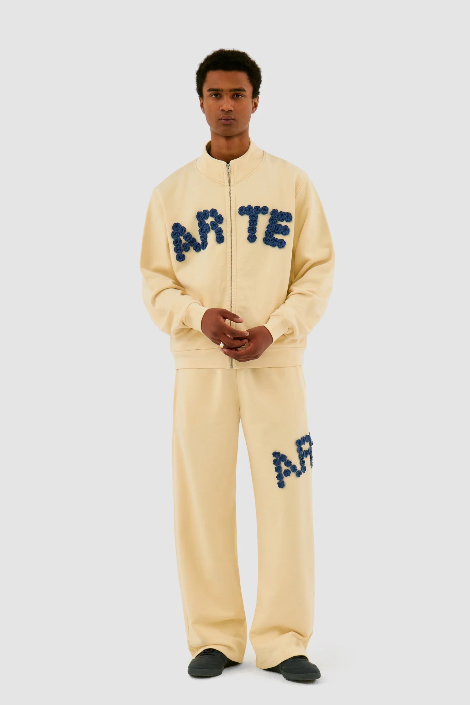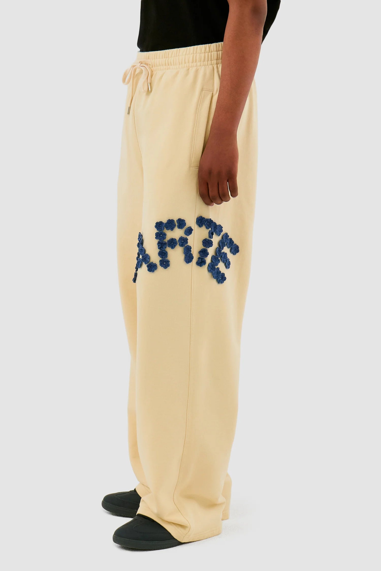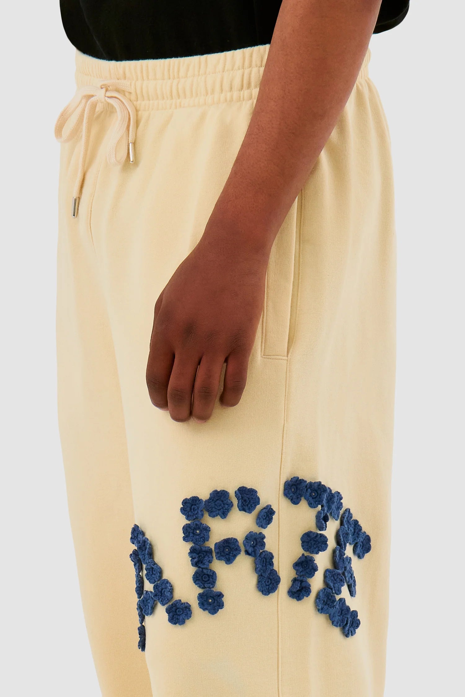 The Crochet Flowers pants in cream feature the Arte logo made up of crochet flowers on the left leg. Made from premium cotton, the pants come in a relaxed fit with a drawstring waistband and two side pockets. Complete the look with the matching Crochet Flower Jacket.