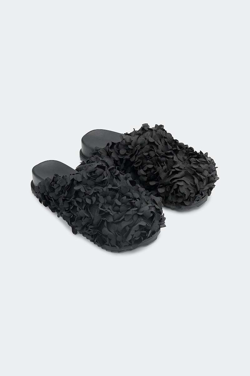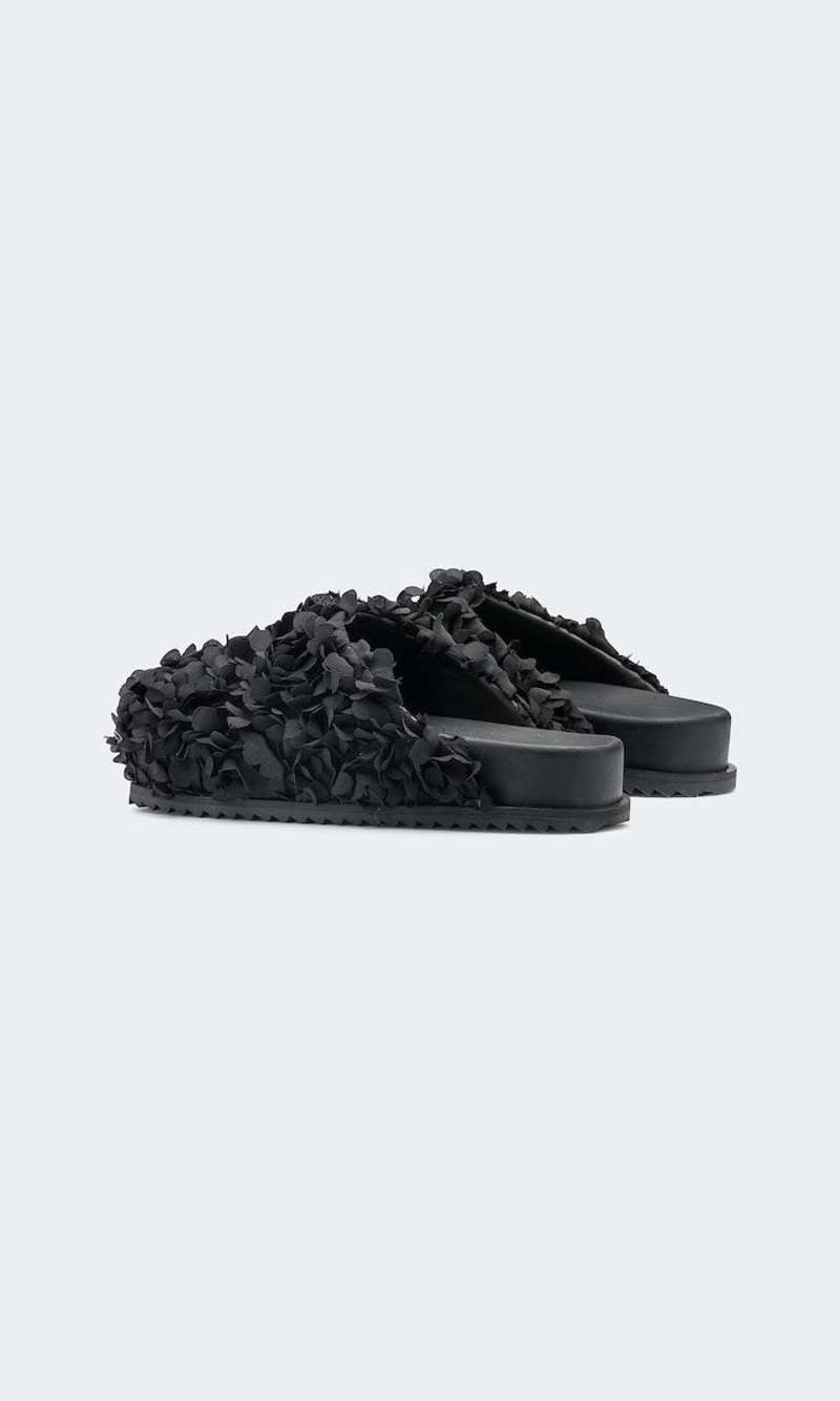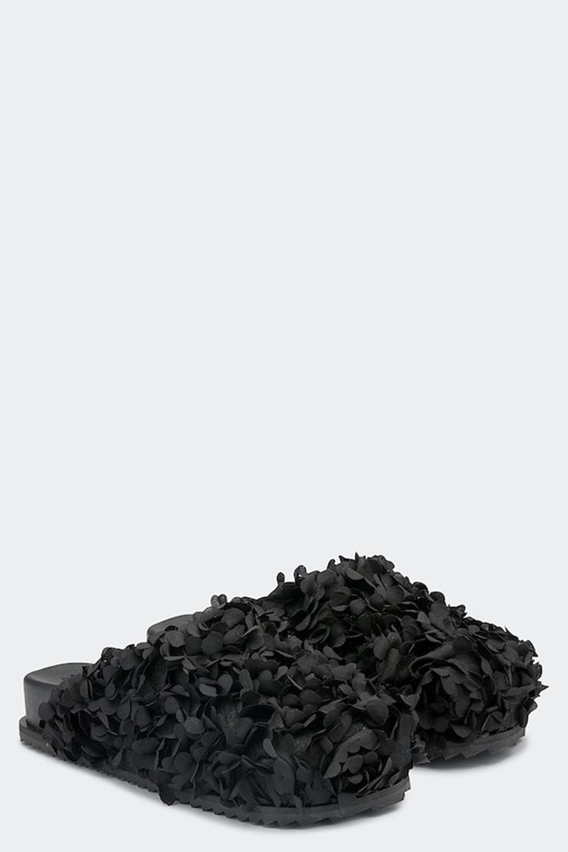 Sandals Slide Flower Black