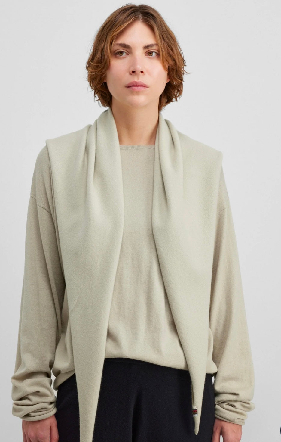 A triangle shaped cashmere scarf with rolled edges. Your best friend on a cold day, which you can even transform from scarf to a belt or top.