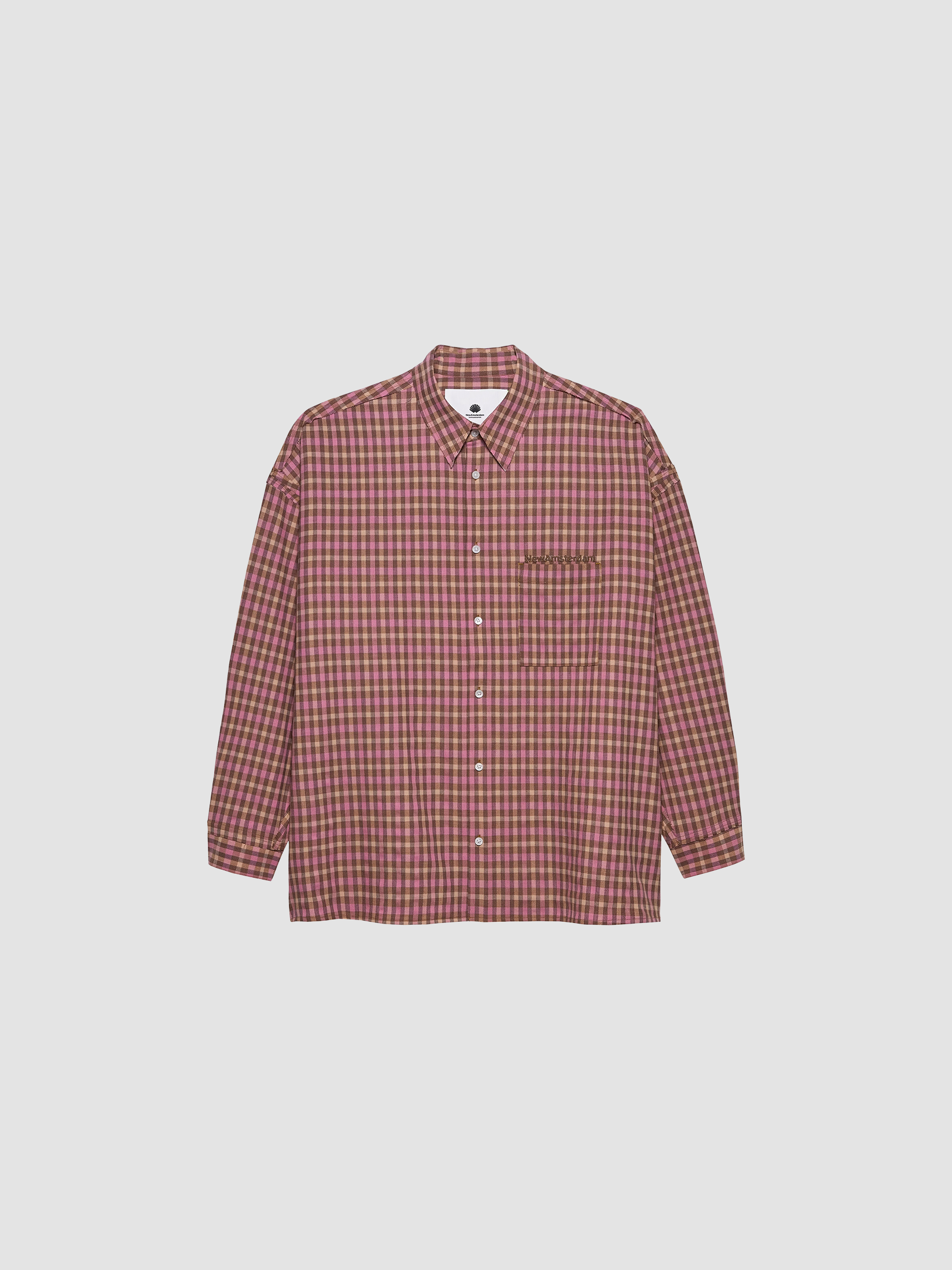 Button-up shirt crafted from a cotton jacquard stripe, designed in a oversized fit that falls below the hip. Features a chest pocket with subtle embroidery detail and is finished with raw edge seams at the shoulder, armhole and cuffs.