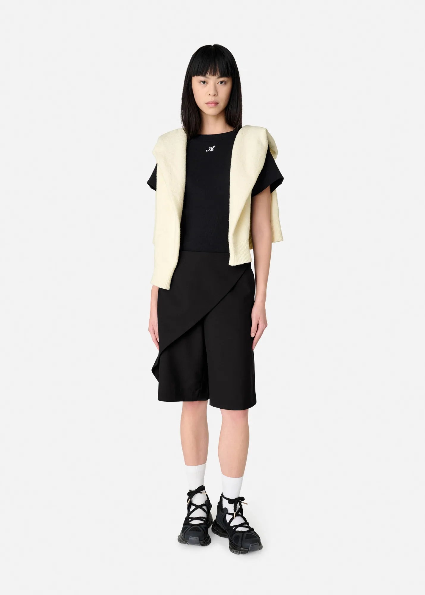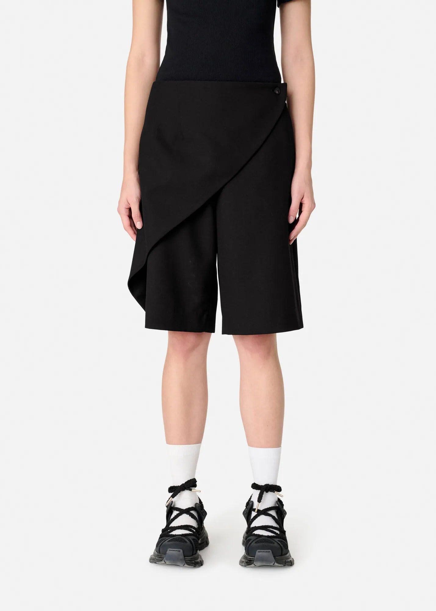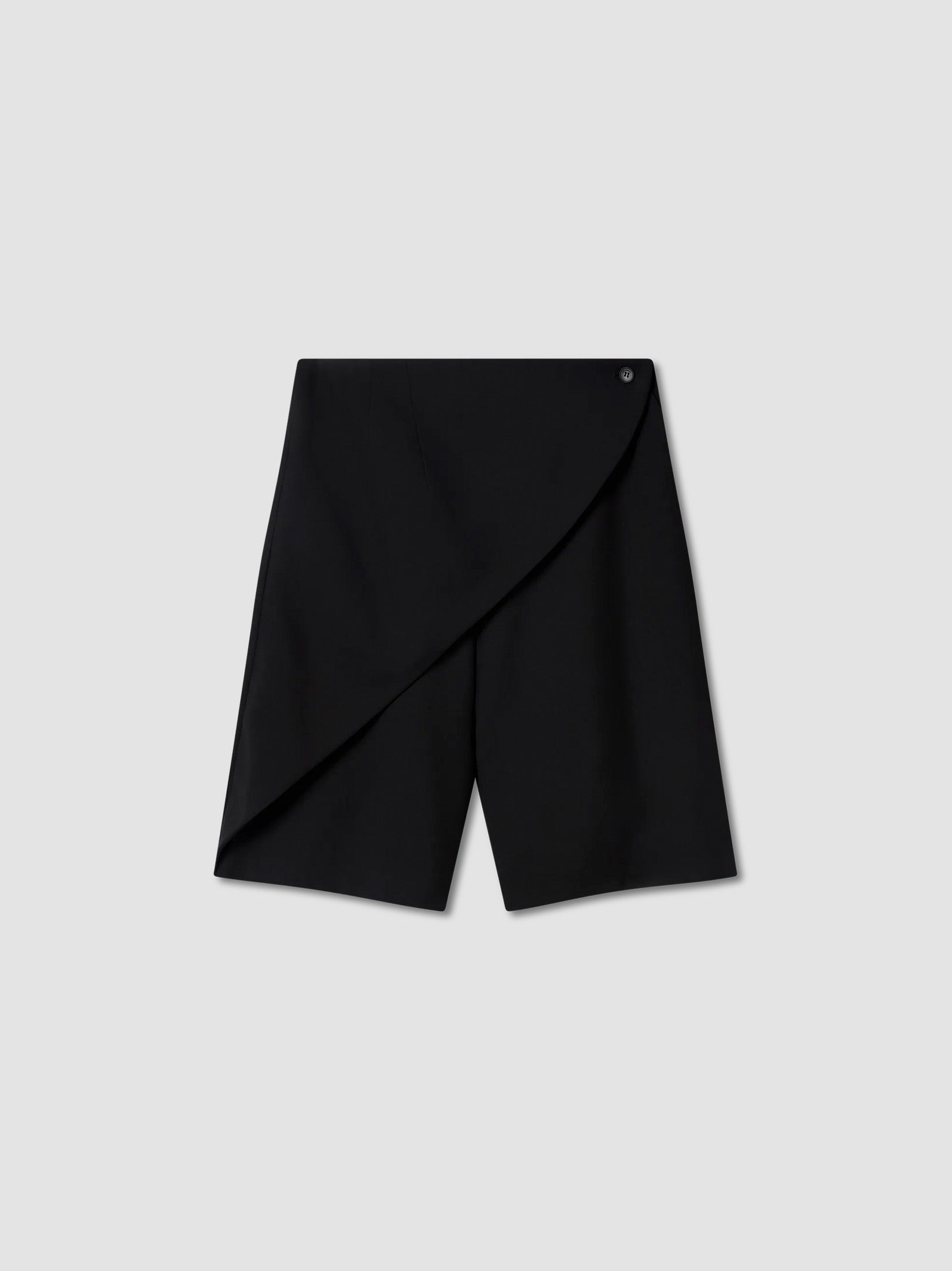 The Aria shorts are tailored with a sweeping overlay across the relaxed profile. The draped panel can be fastened at the front or back for a customizable finish.
