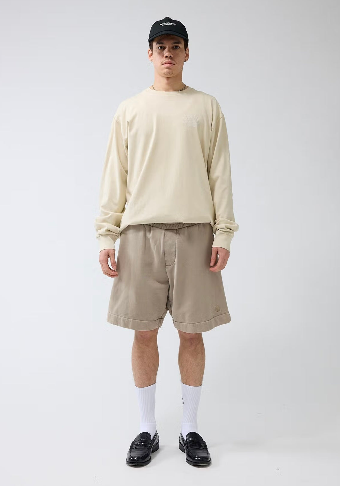 Shorts are cut to a regular unisex fit with a mid waist, straight leg and thigh length. Detailed with logo embroidery on the lower front hem. Complete with an elasticated waistband. Crafted from 100% cotton with a garment dyed finish.