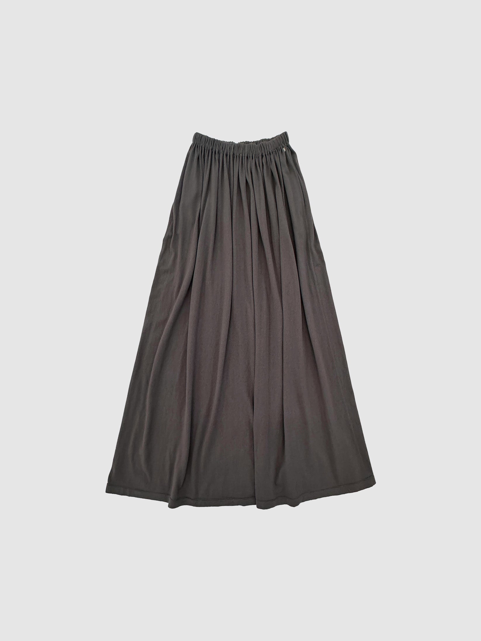 Mary is an extra-long skirt, designed in lightweight cotton cashmere for effortless elegance. Crafted with a straight silhouette, it features a comfortable elastic waistband that creates a gathering effect for added volume. side pockets add practicality to this airy spring and summer essential. The lightweight cotton-cashmere series fuses regular cashmere (30%) with the crisp structure and clean breathability of cotton (70%).