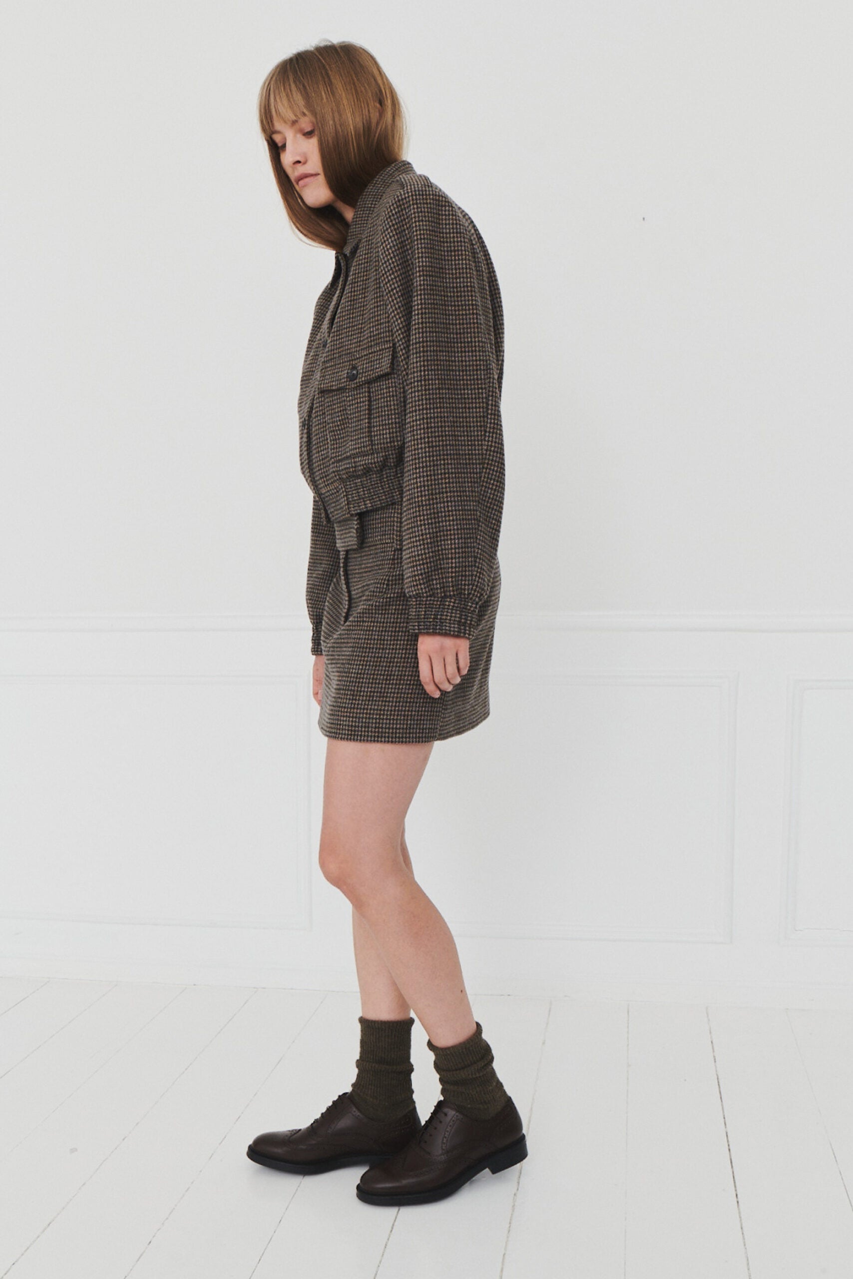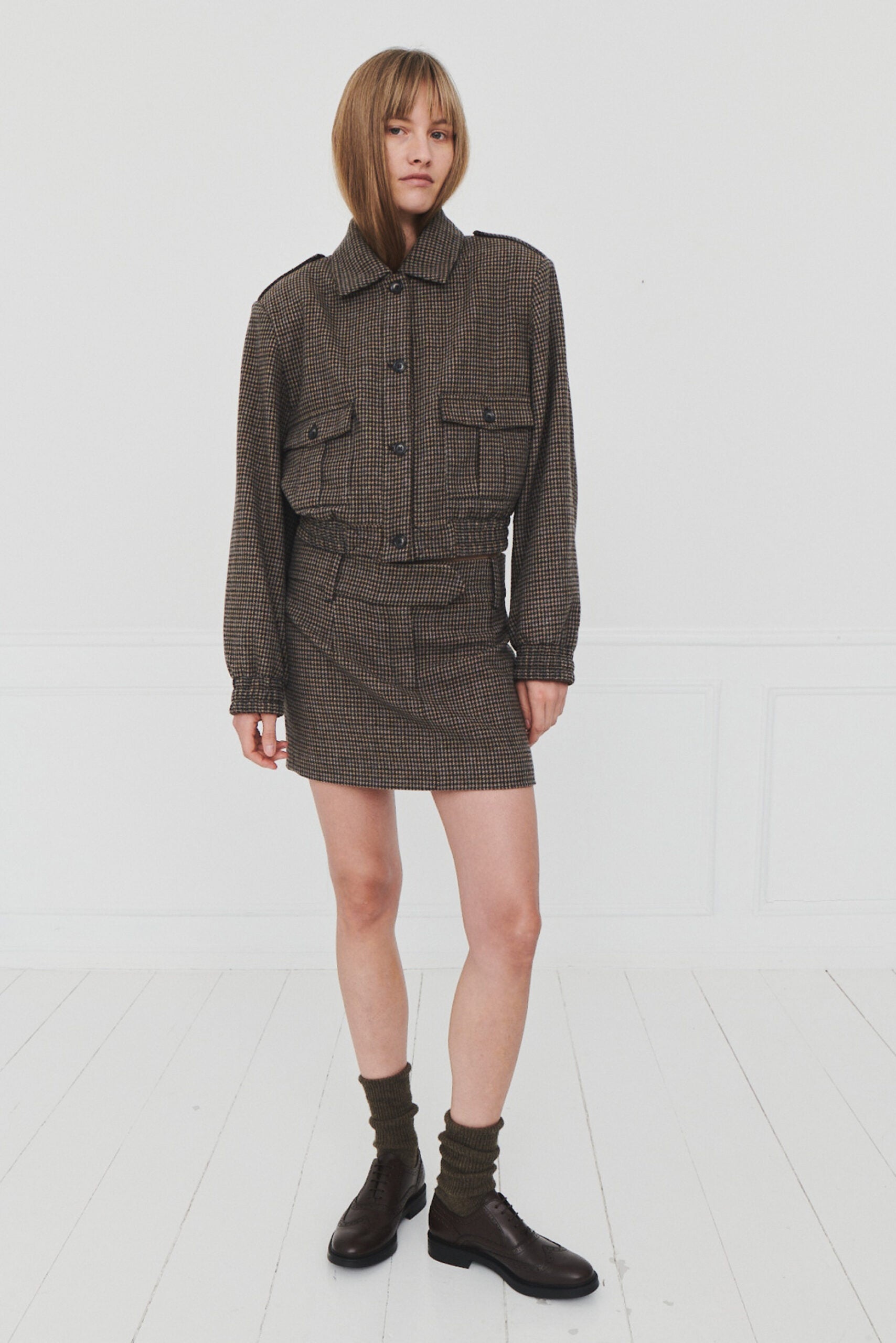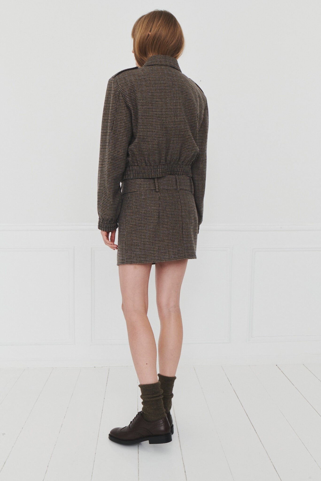 Sion Skirt is a stylish mini skirt crafted from 60% recycled wool. This eco-friendly design offers a sleek and modern look while emphasizing sustainability. Its classic cut and high-quality material make it a versatile addition to your wardrobe.