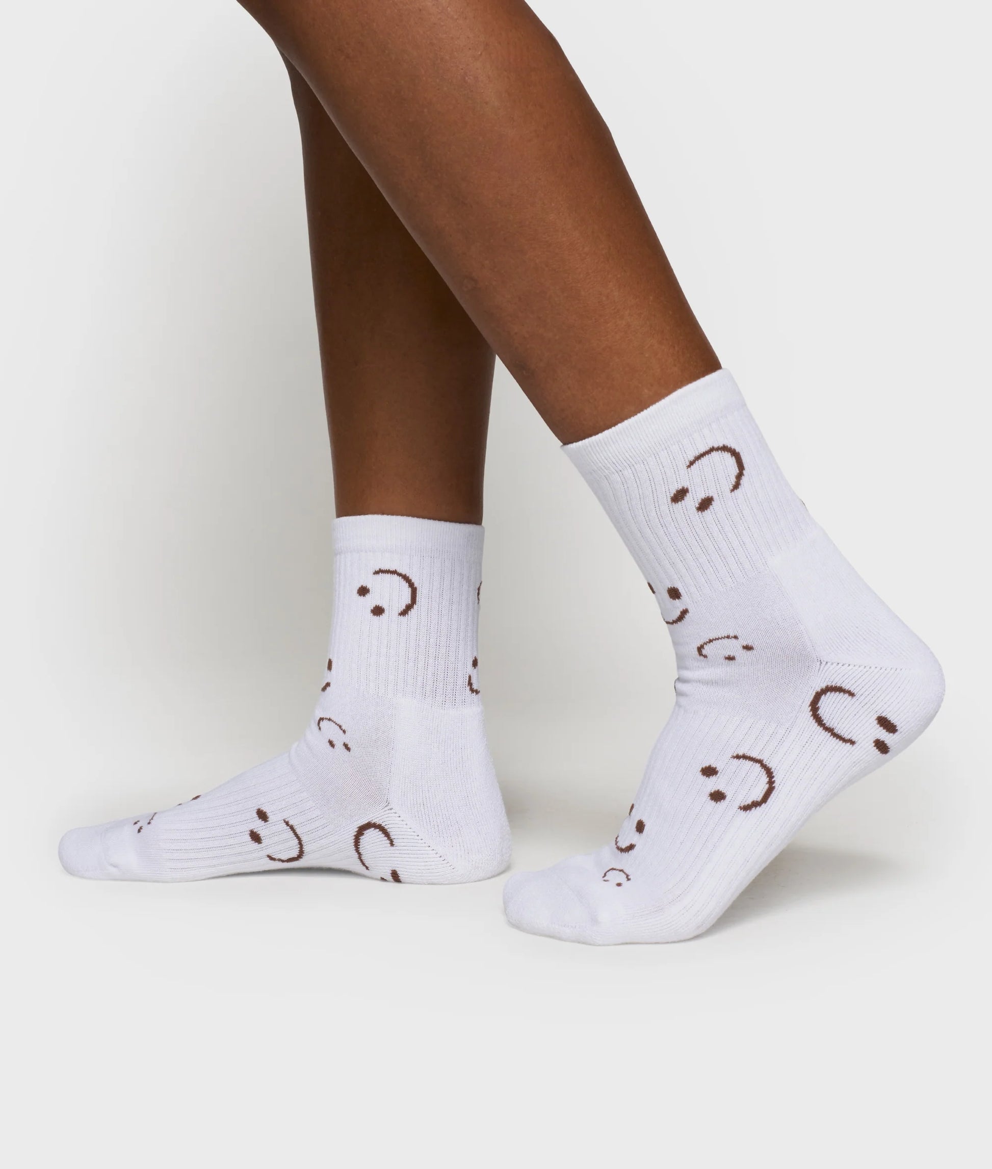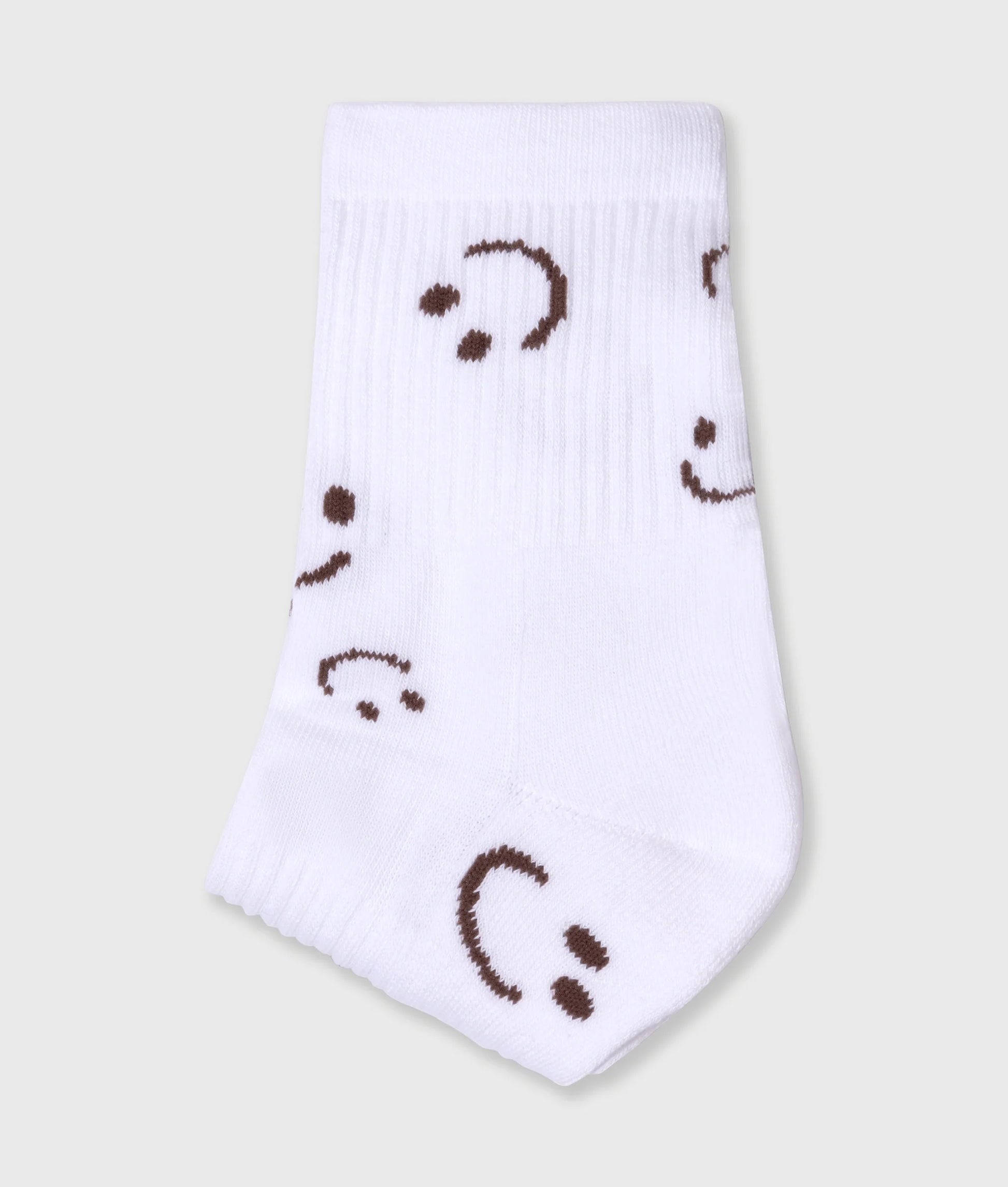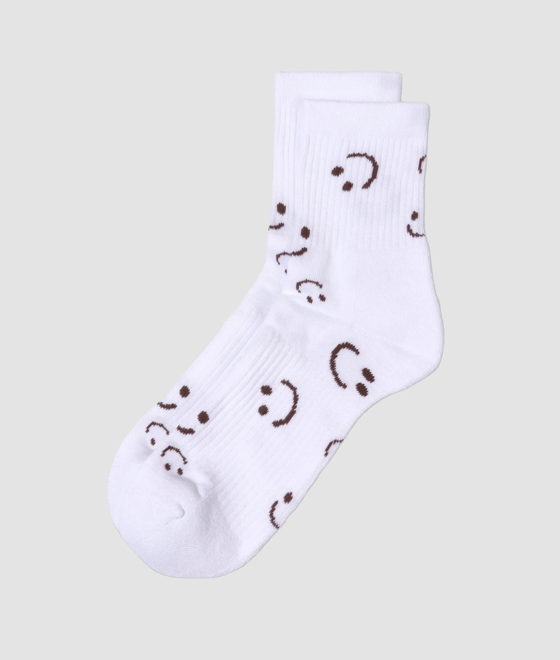 Ribbed socks, made from elastic cotton polyamide blend. Featuring an all-over smileyprint and a logo under the foot. Designed with a ribbed cuff and shimmering silver lurex details.