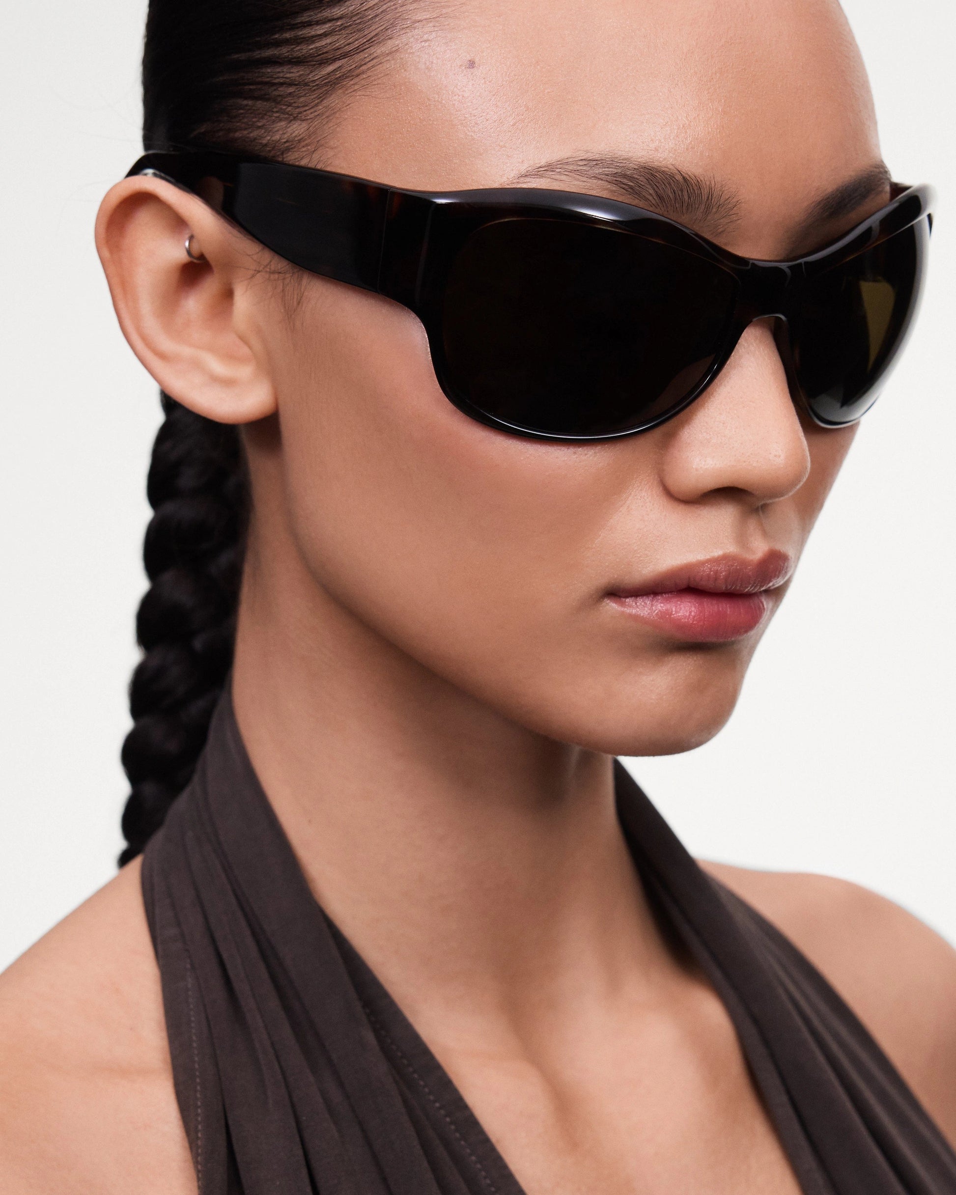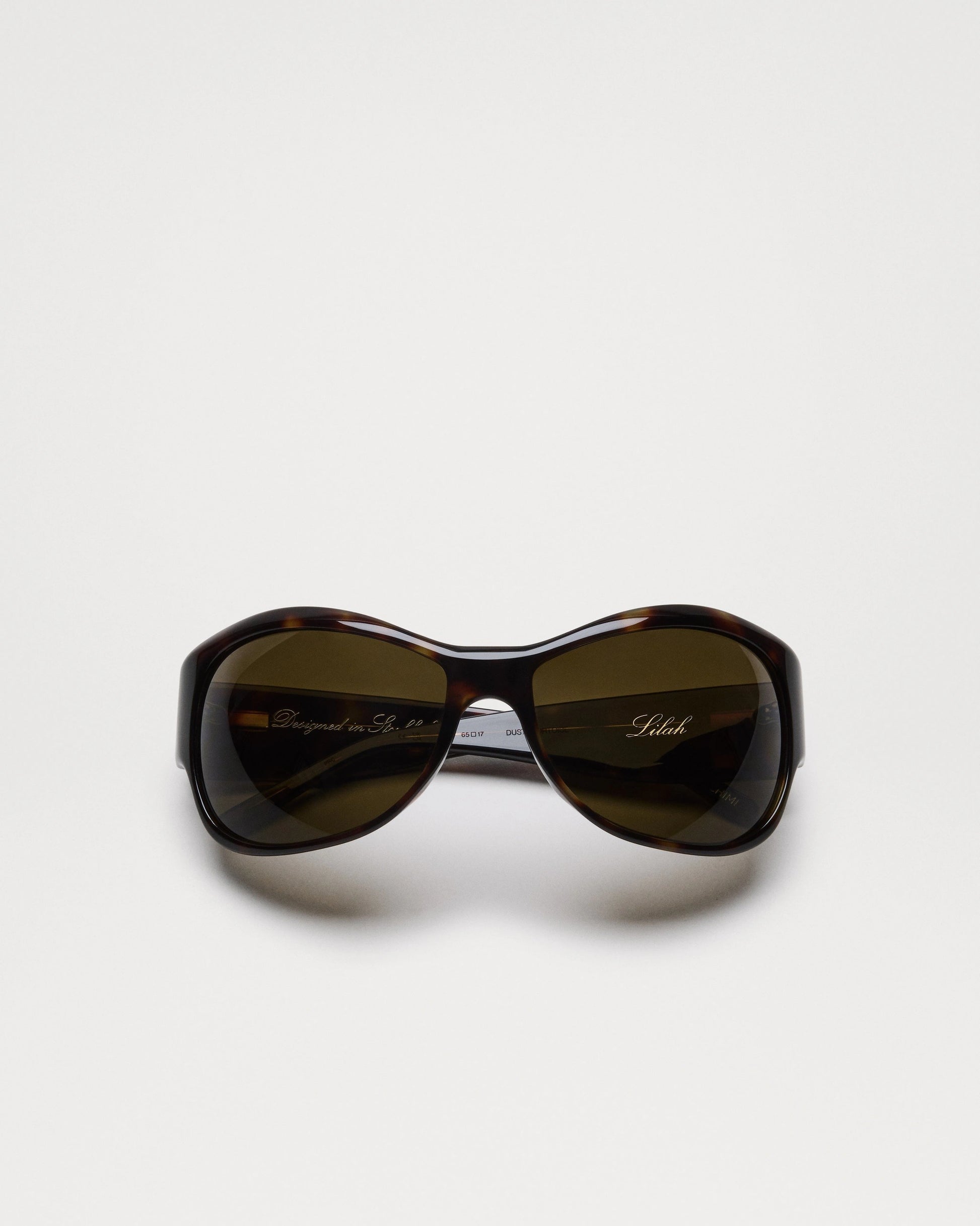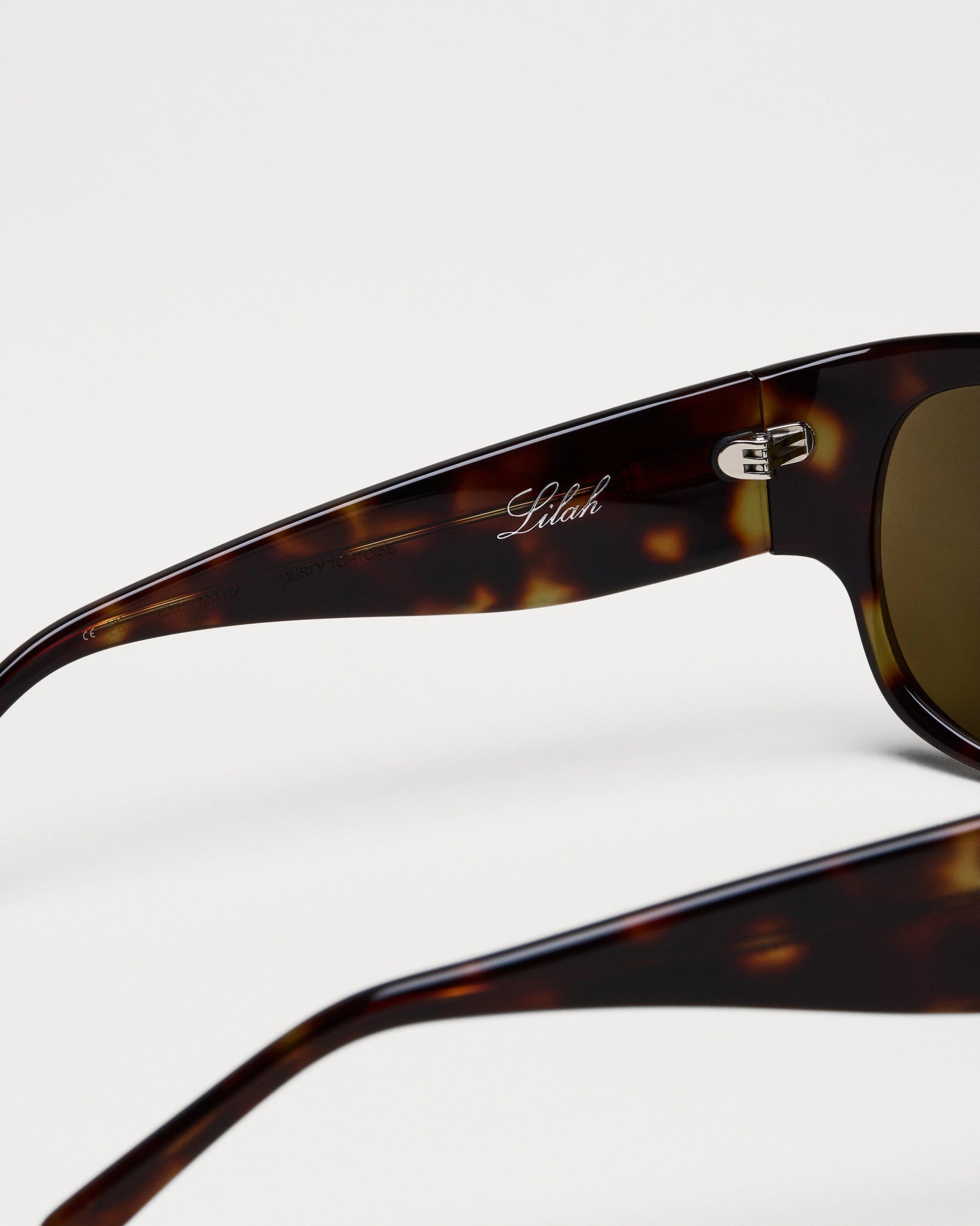 Edge, with coverage. Lilah wraps slightly around the face for that close-fit, bold-look combo. Sleek. Confident. Made to block out distractions (and sunlight). Handcrafted in Acetate Renew™ with nylon lenses for maximum clarity and 100% UVA and UVB protection.