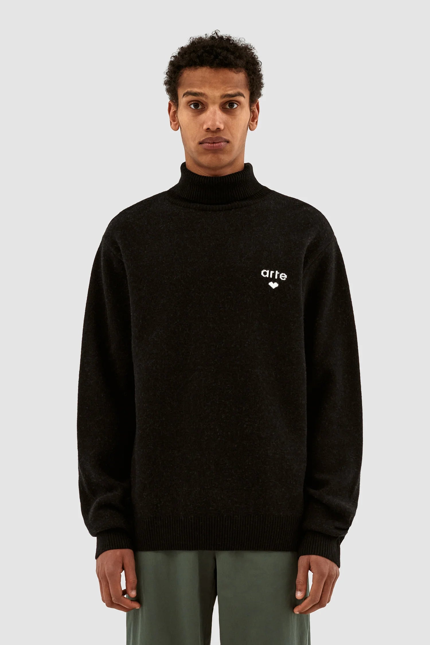 The Kole Logo sweater is sure to elevate your everyday look. The black knit is detailed with a roll neck collar and dropped shoulders, adding effortless refinement to each look. It's finished with a white embroidered logo on the chest.