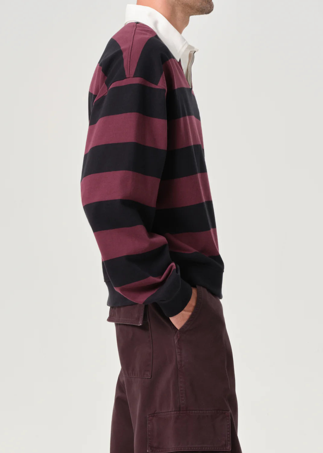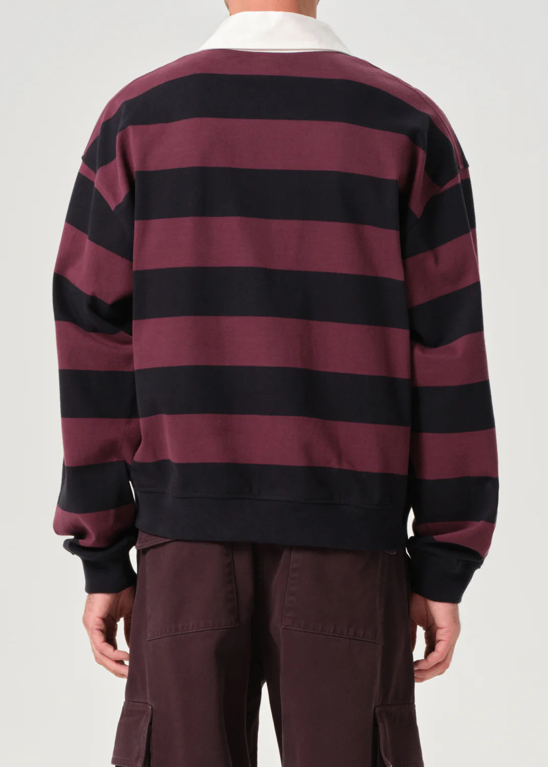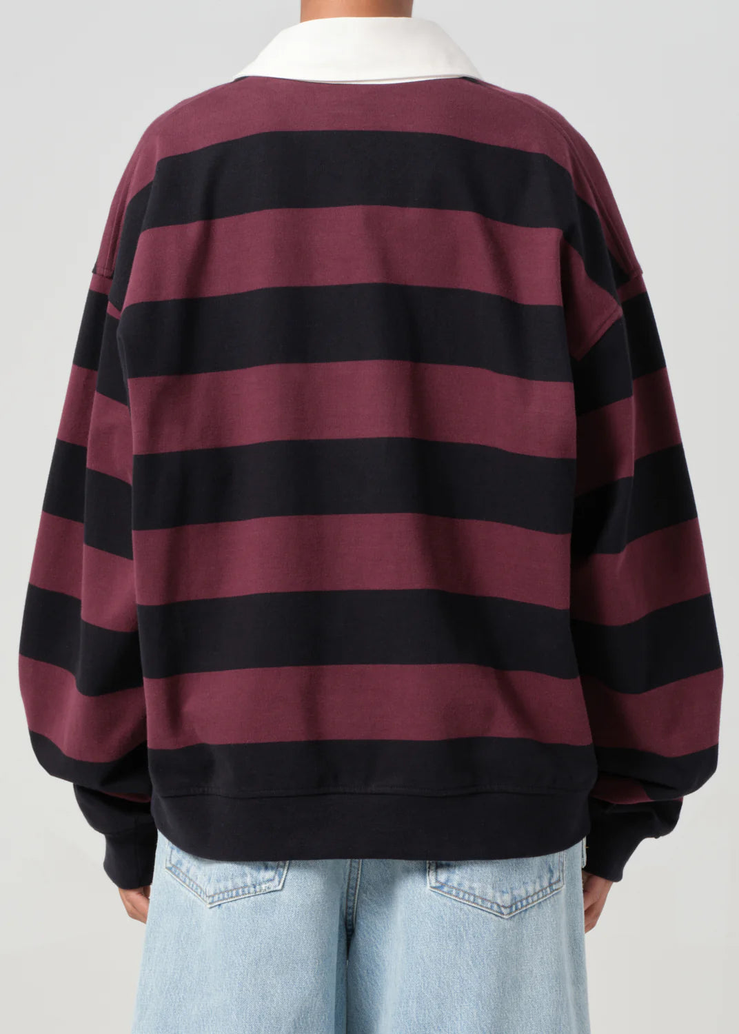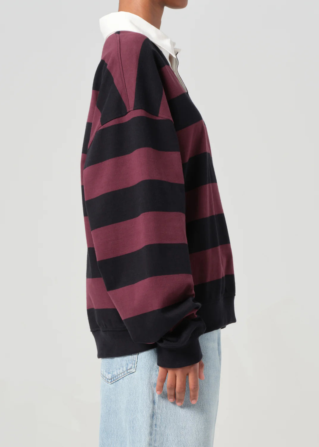 Sweater with relaxed fit in cotton rib knit, striped black and burgundy colour.