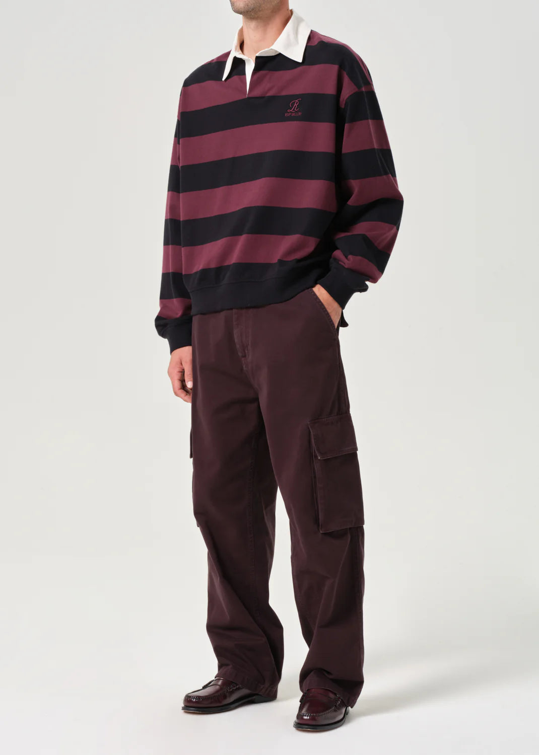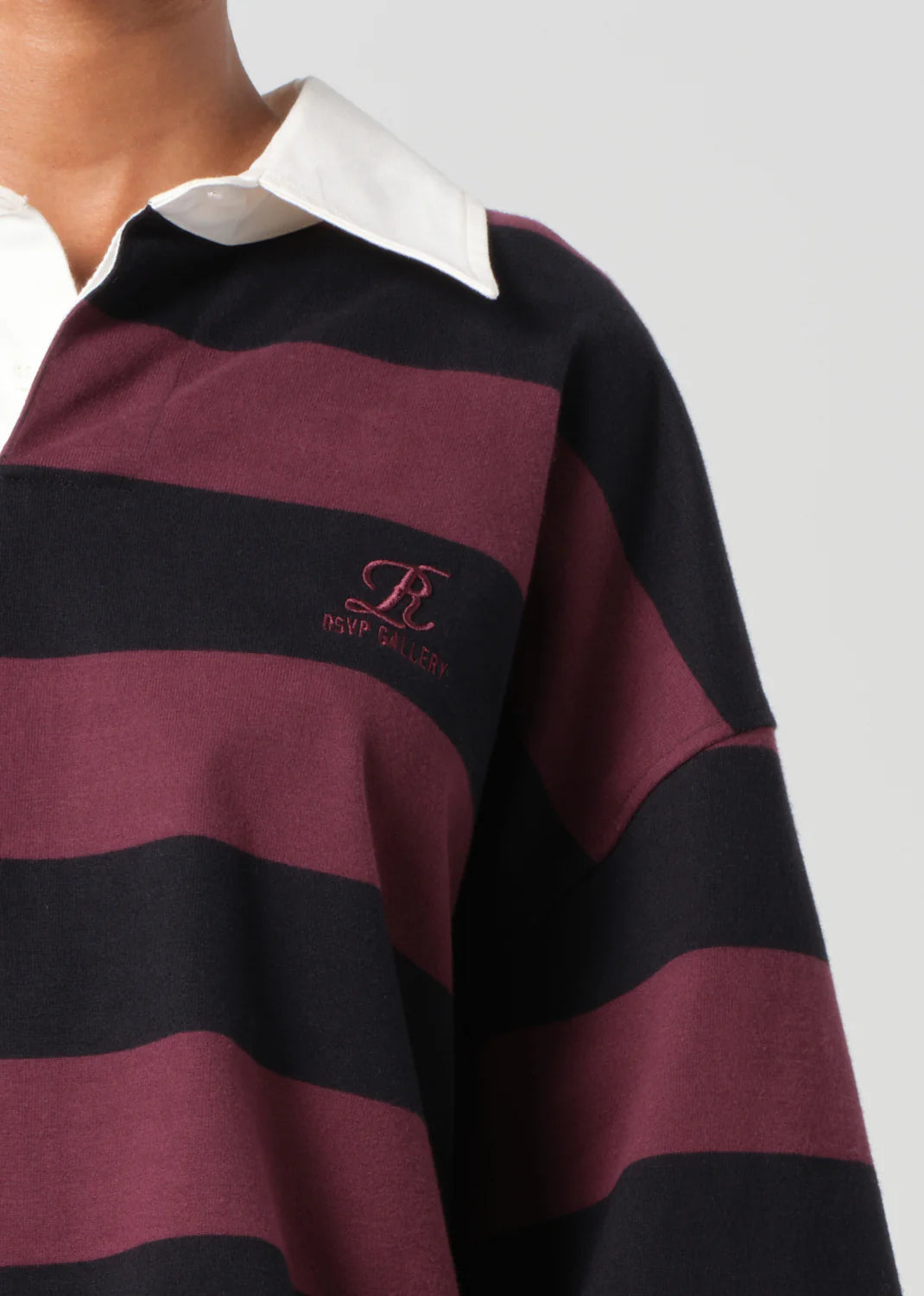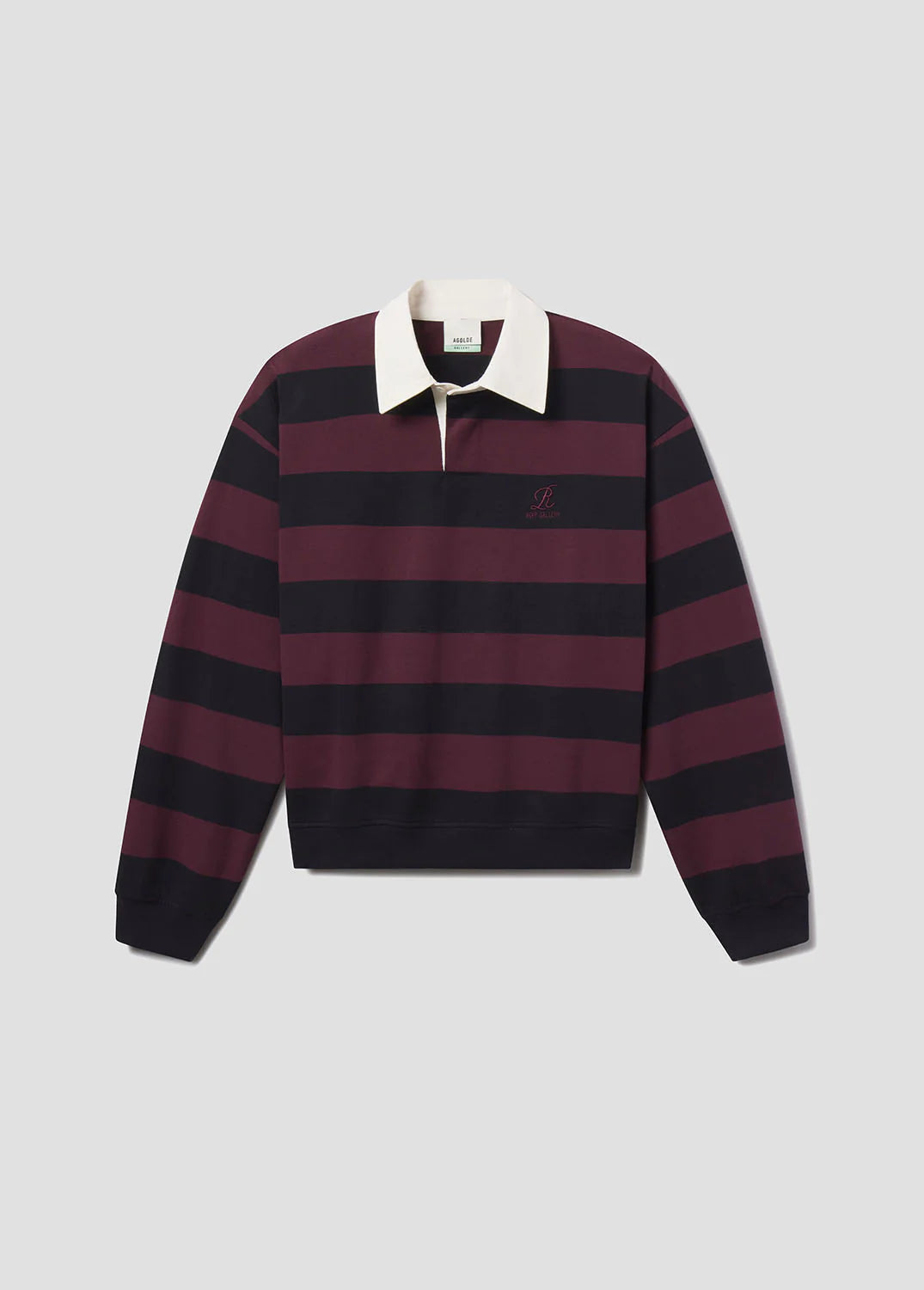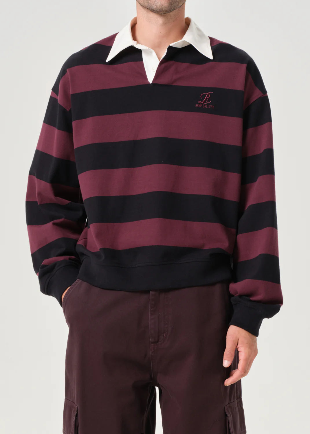 Sweater with relaxed fit in cotton rib knit, striped black and burgundy colour.