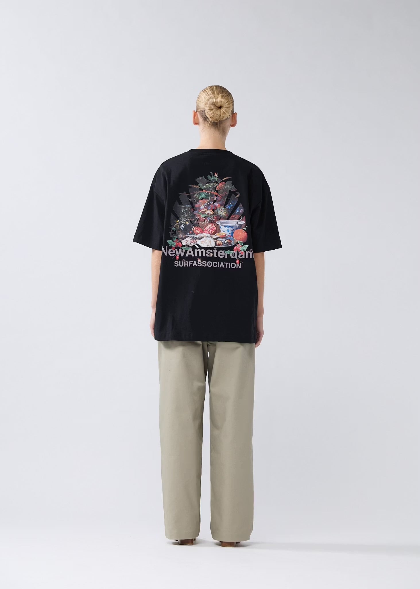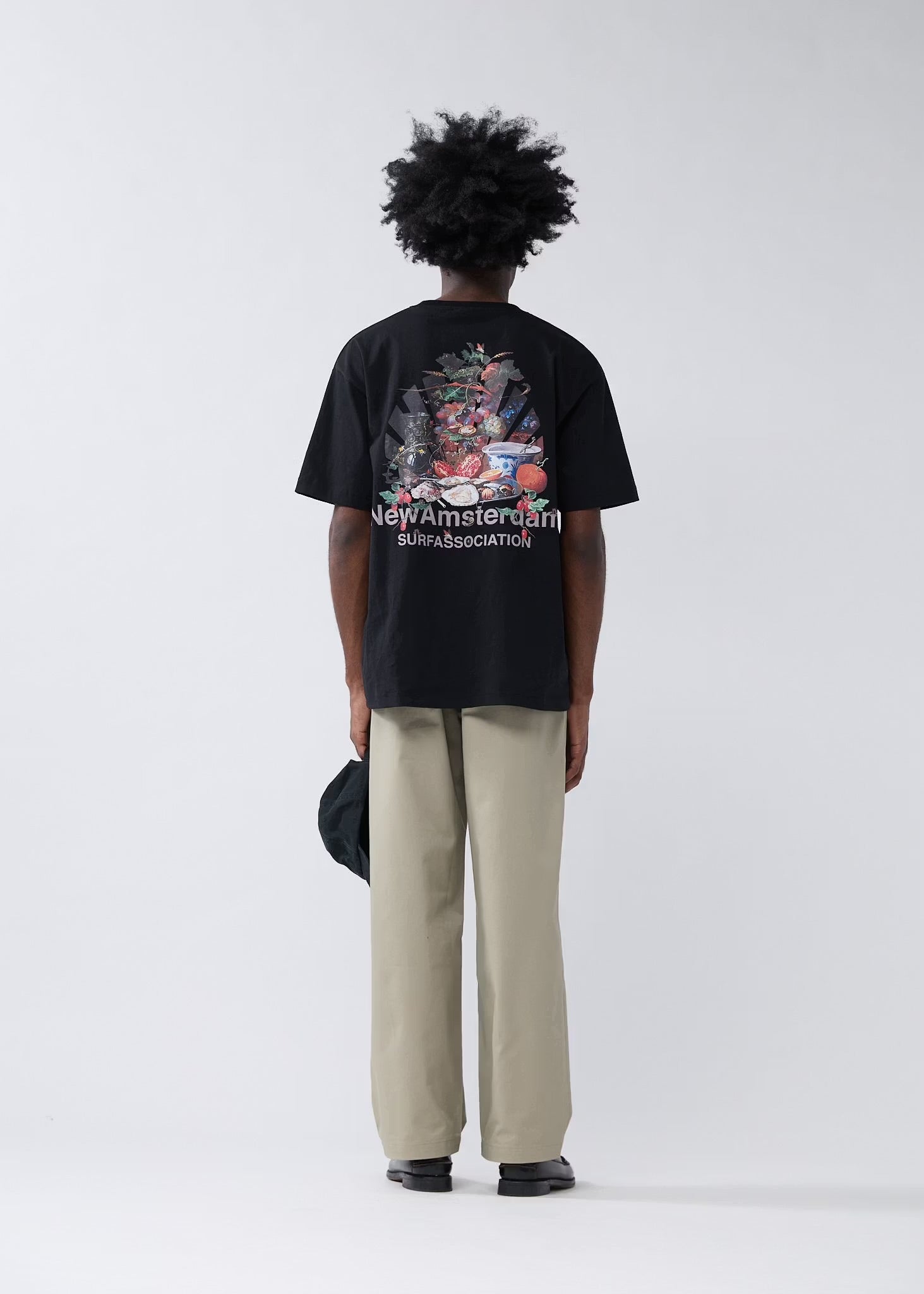 Crew neck t-shirt, cut to a regular unisex fit. Detailed with seasonal branded 'Buffet' artwork, digitally printed on the front and back. Made from 240 GSM fabric-dyed cotton.