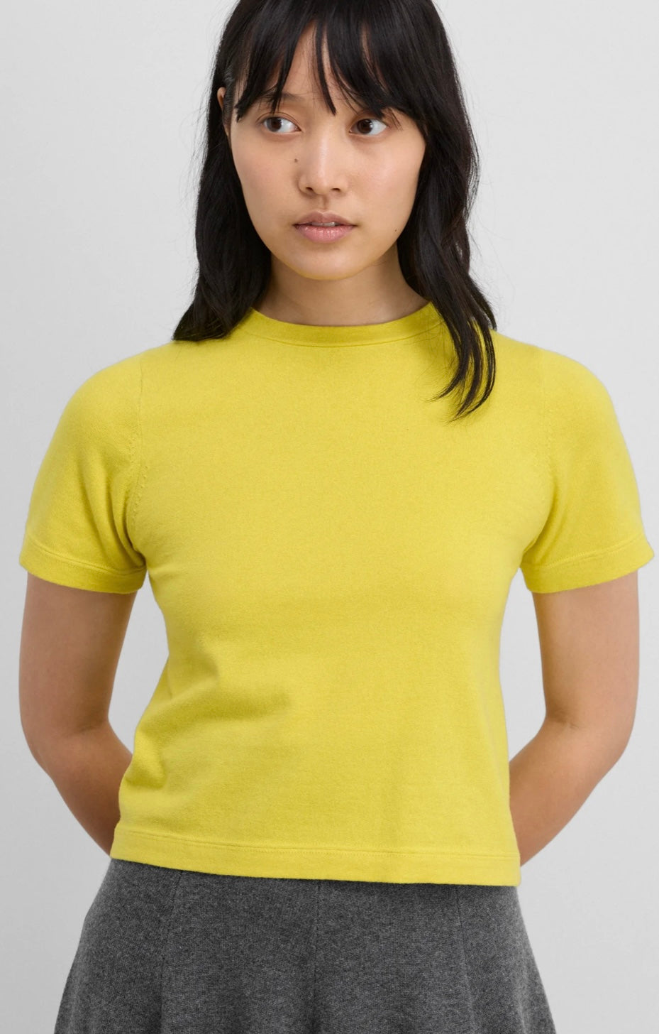 Small, short-sleeved t-shirt in cotton-cashmere. The Tina is small, but with its square fit not as tight as the america. The cotton-cashmere series fuses our regular cashmere (30%) with the crisp structure and clean breathability of cotton (70%).