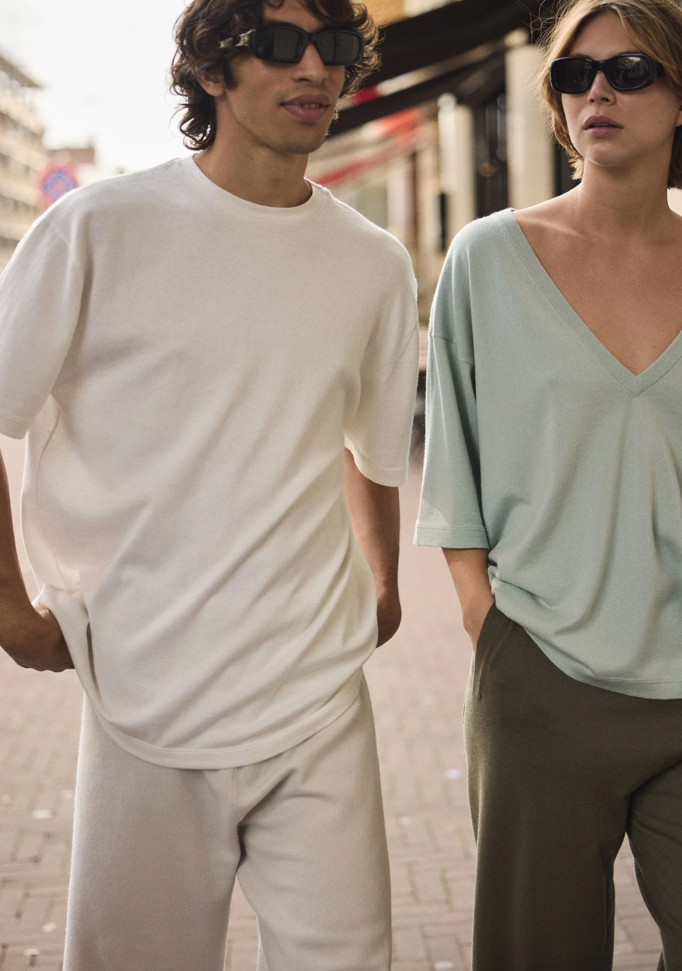 The rik is a comfortable short sleeve t-shirt and is our loosest fit of the cotton-cashmere t-shirt series. With a composition of 30% cashmere and 70% cotton, it fuses our regular cashmere with the crisp structure and clean breathability of cotton. Great in the heat, or as an underlayer in the wintertime.