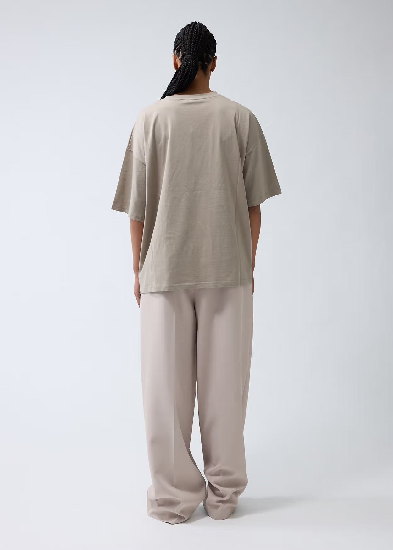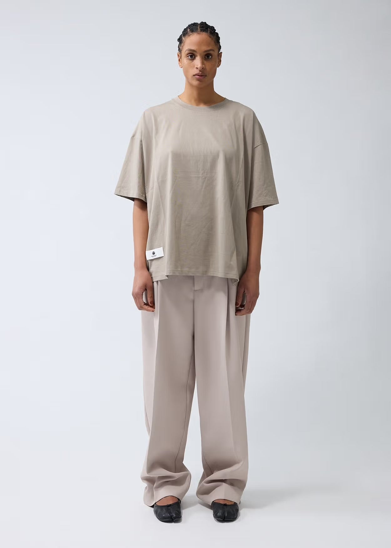 Crew neck T-shirt, cut to a slightly oversized unisex fit. Detailed with the New Amsterdam name embroidery on the front chest. This tee is made out of a 100% mercerized light weight cotton yarn, with a garment dye treatment.